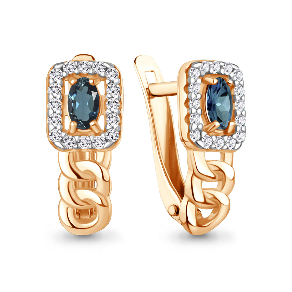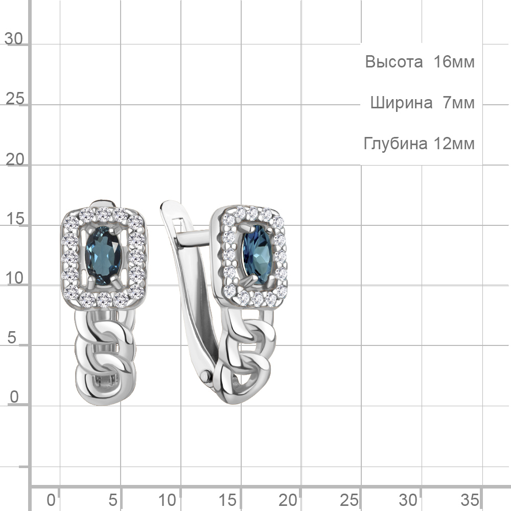 45013608А Серьги из Серебра с топазами лондон блю, фианитами