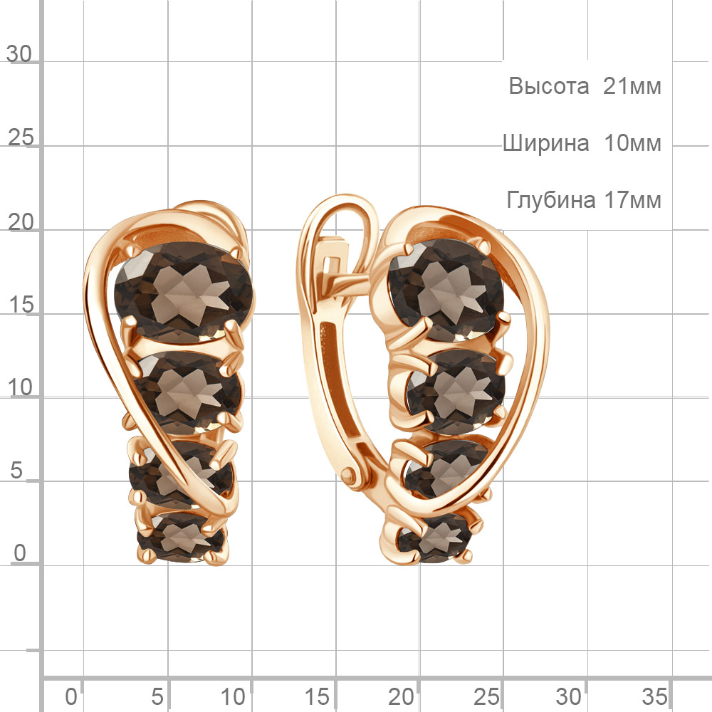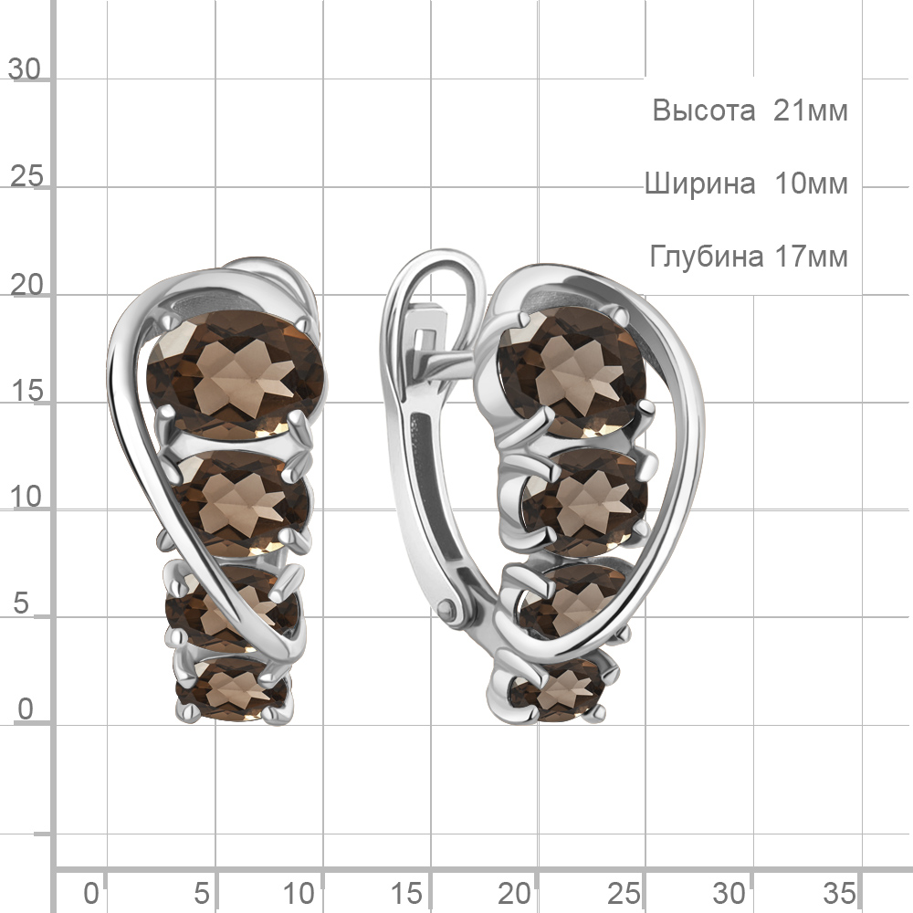 45013801 Серьги из Серебра с кварцами дымчатыми