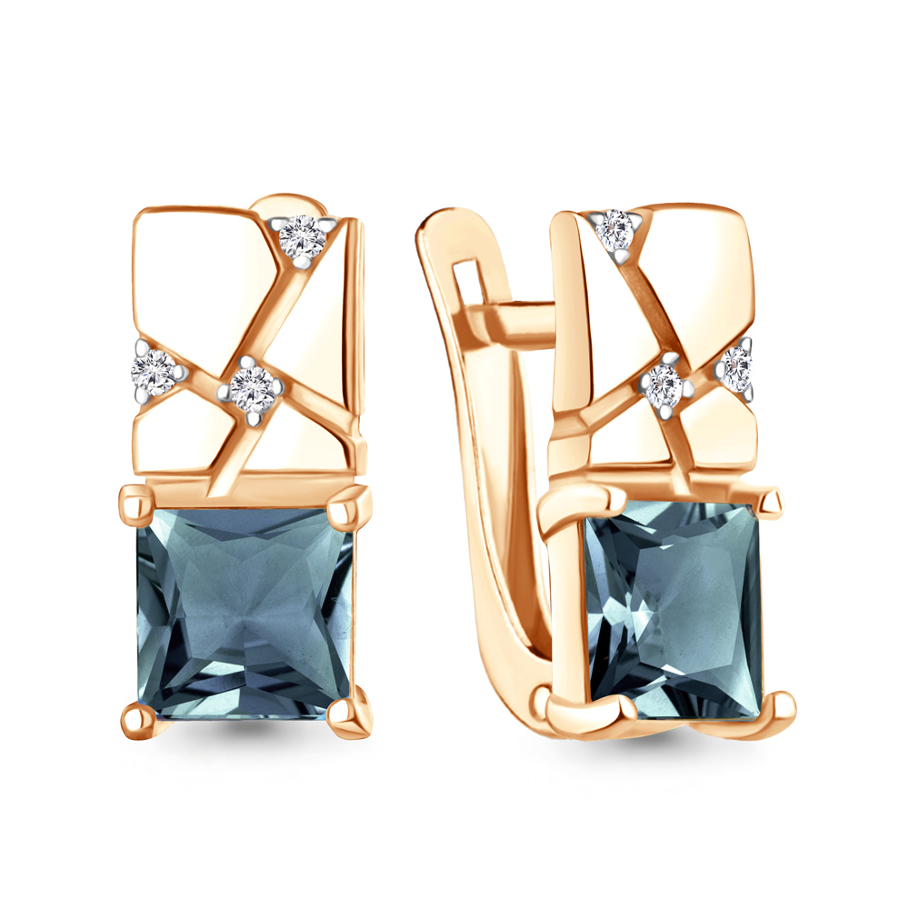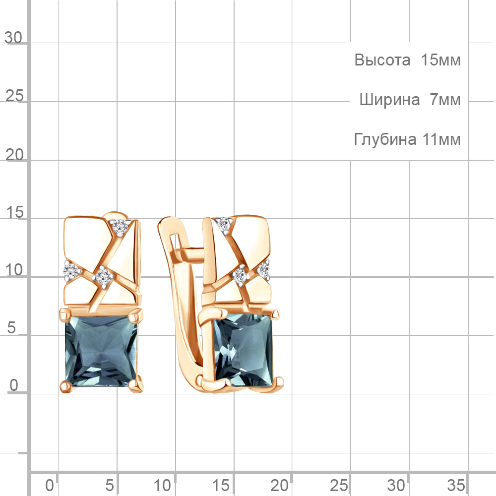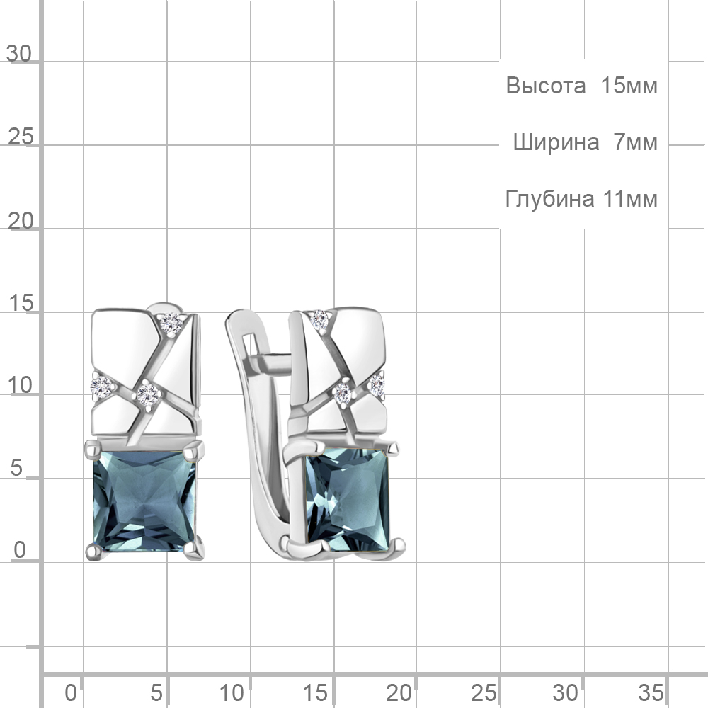 45013908А Серьги из Серебра с топазами лондон блю, фианитами