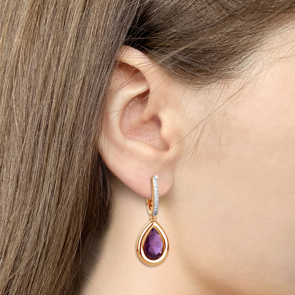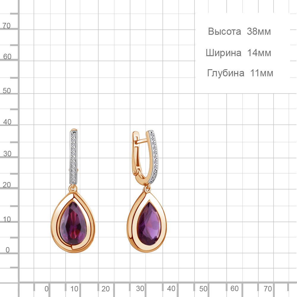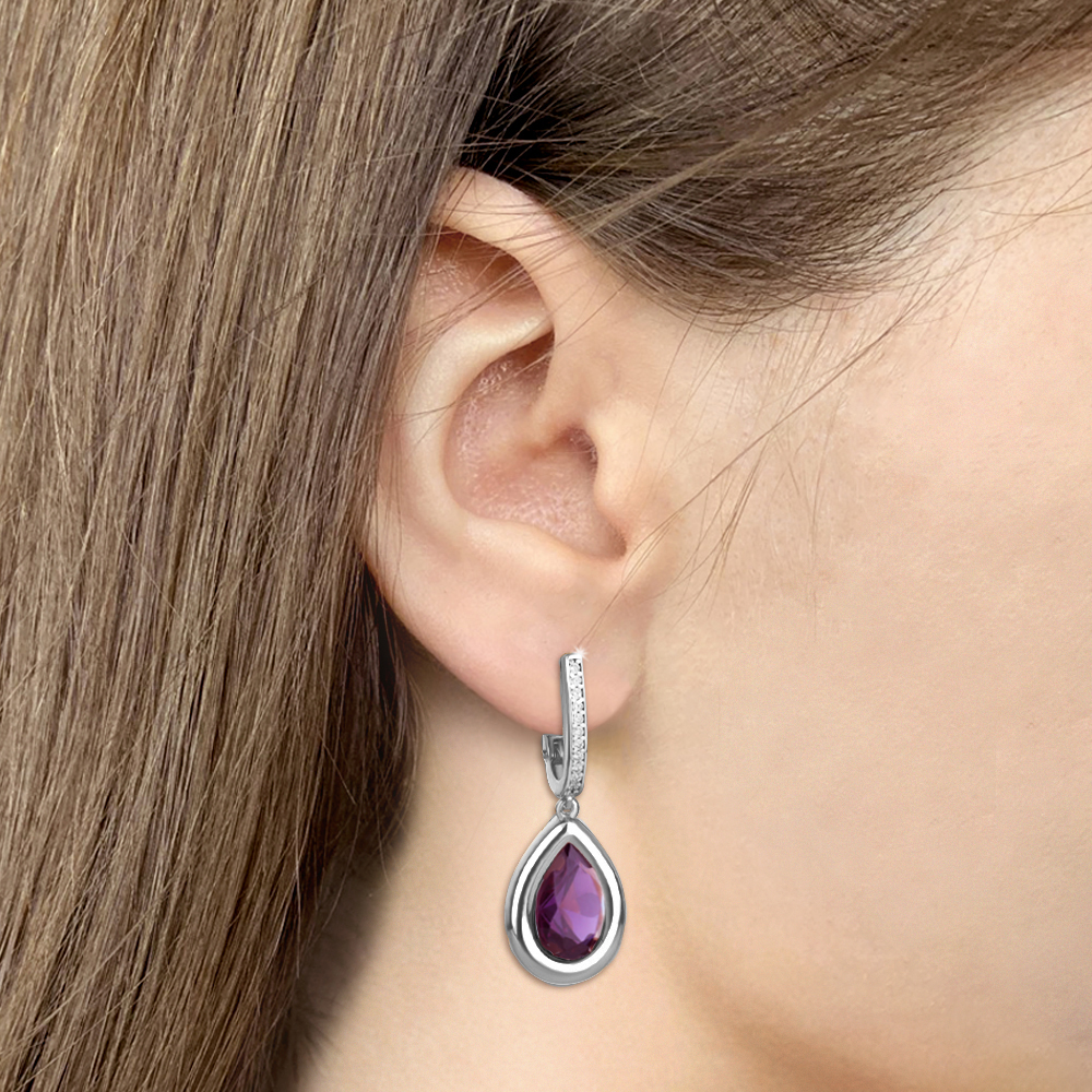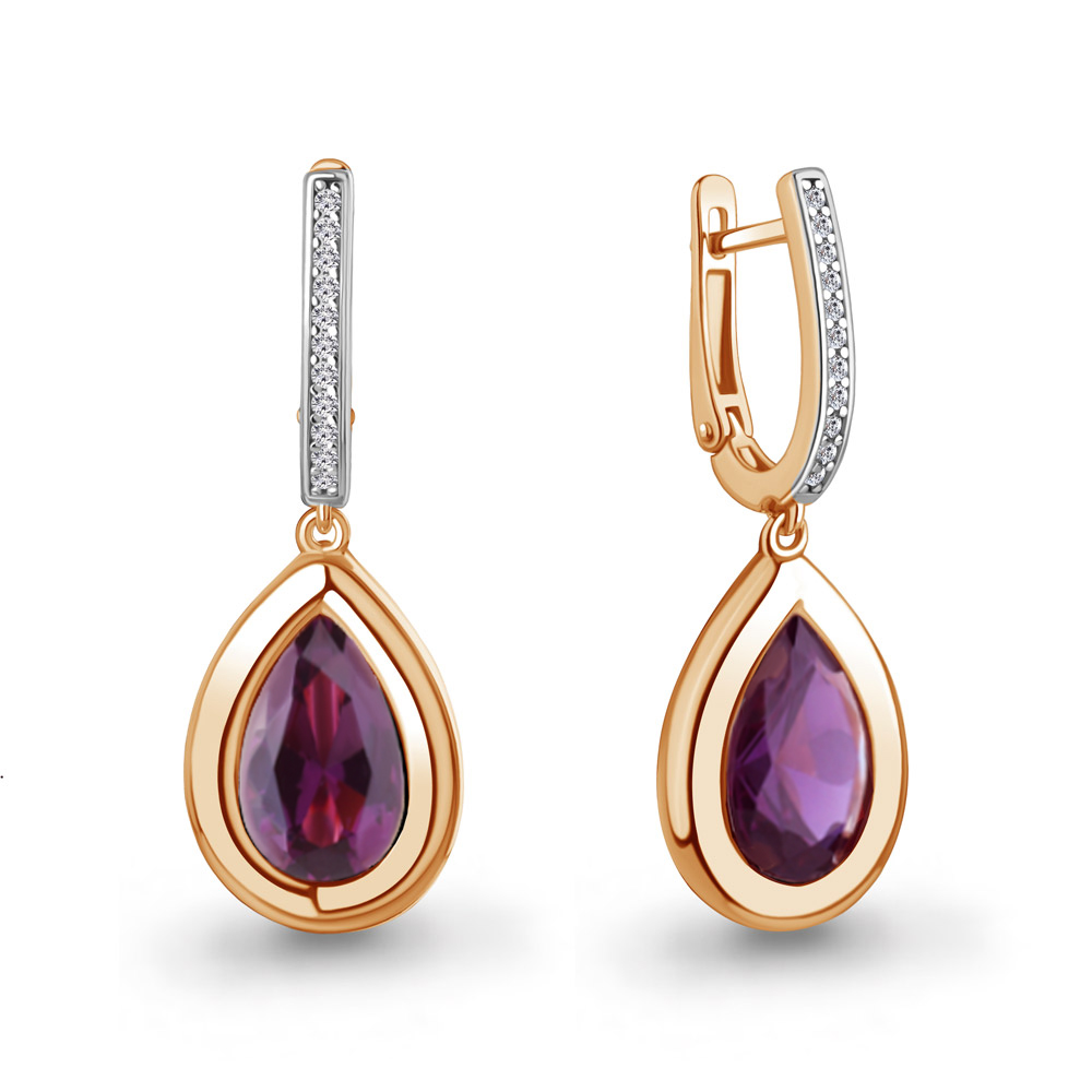 45015484А Серьги из Серебра с наноаметистами иск., фианитами