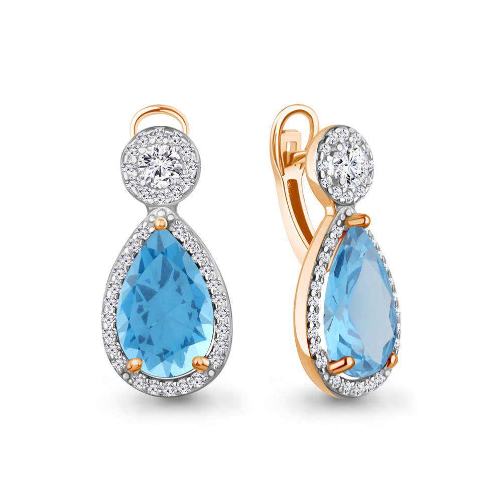 45015592А Серьги из Серебра с нанотопазами свисс, фианитами