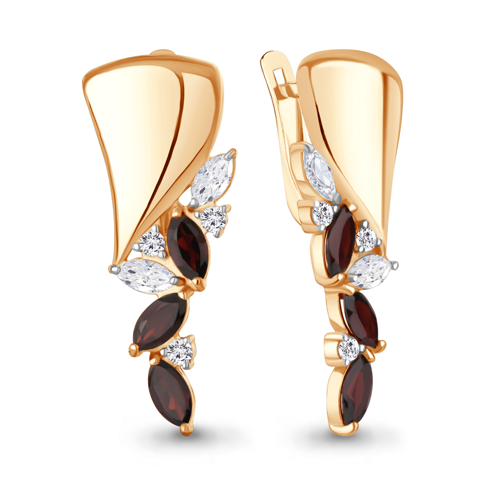 45017203А Серьги из Серебра с гранатами, фианитами