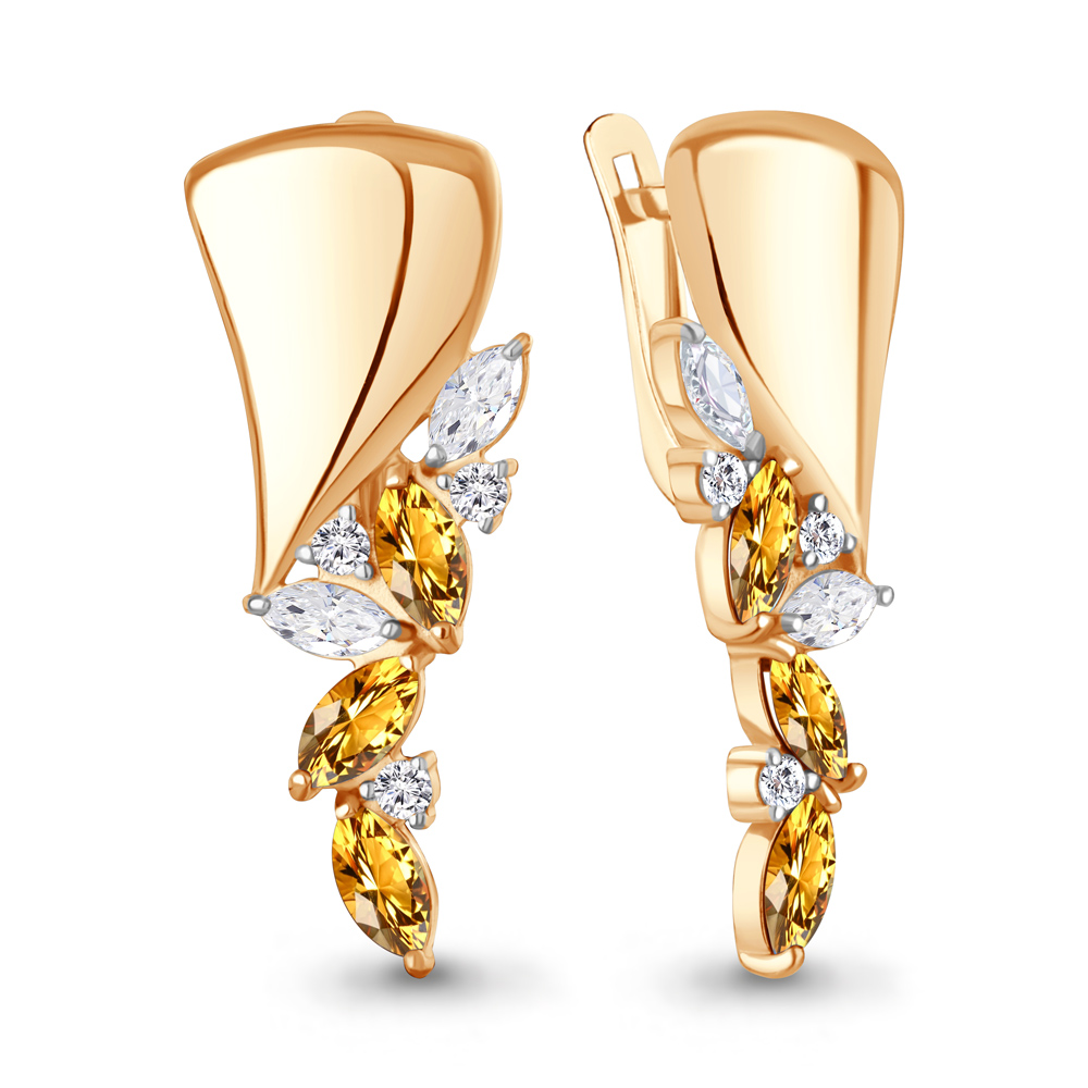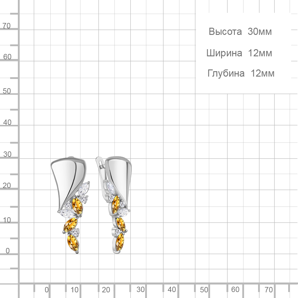45017206А Серьги из Серебра с фианитами, цитринами