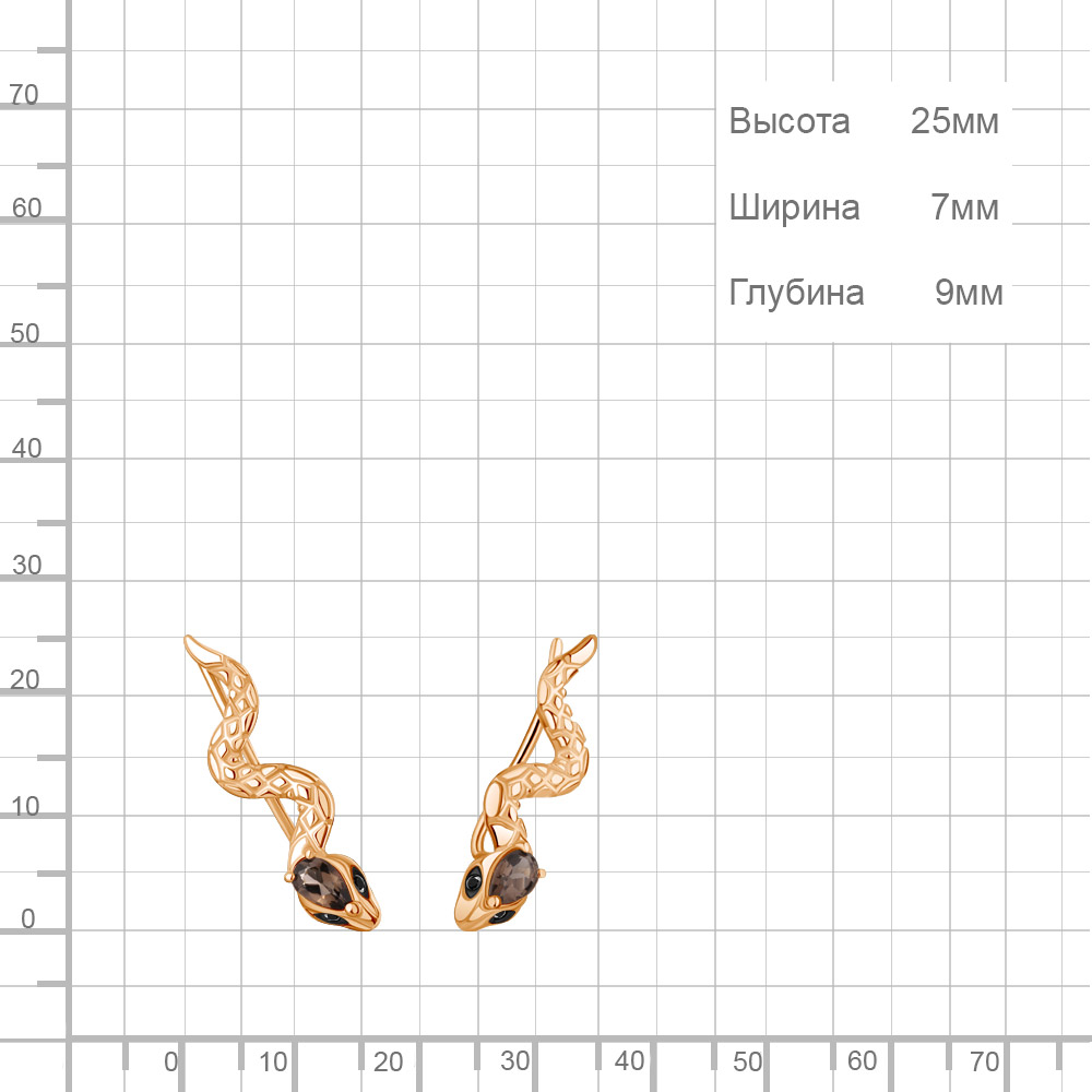 45017701Ч Серьги из Серебра с кварцами дымчатыми, нанокристаллами
