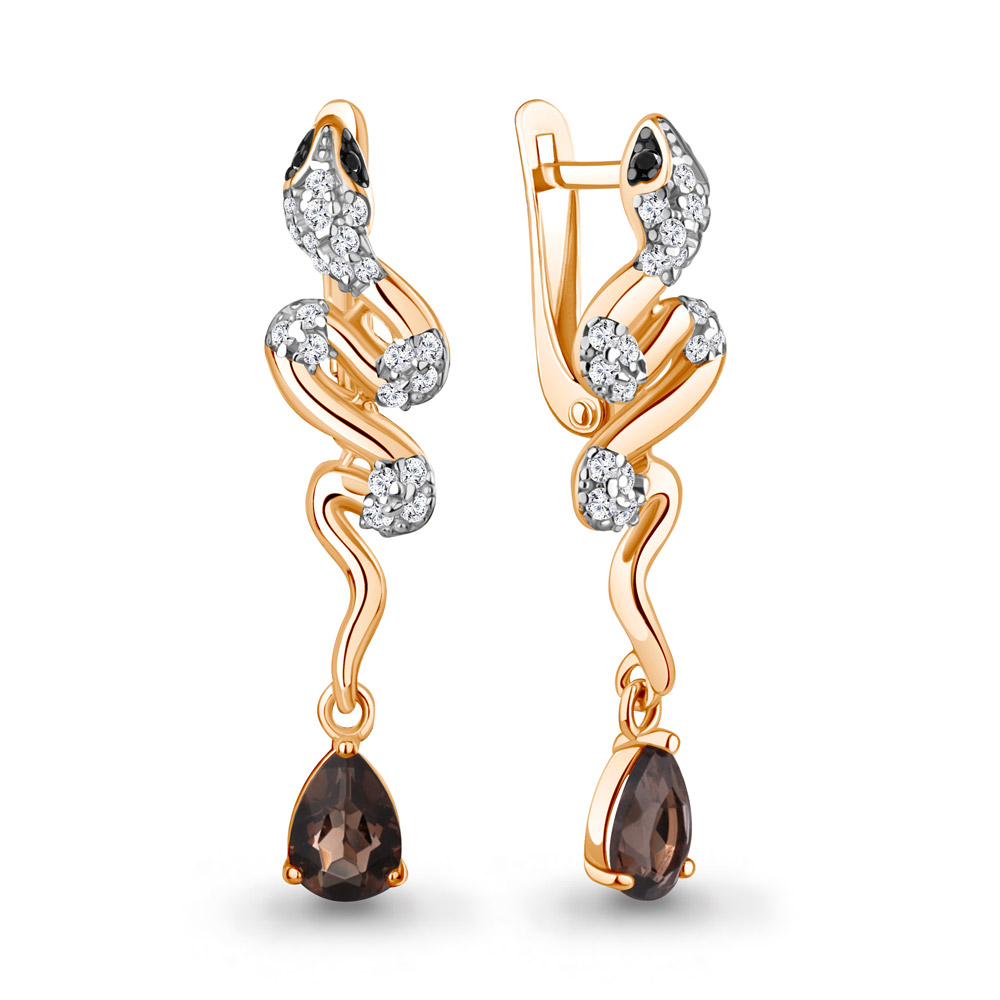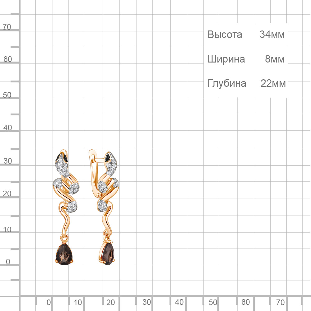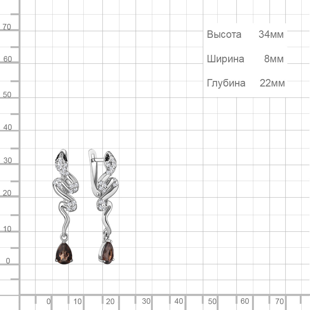 45018001АЧ Серьги из Серебра с кварцами дымчатыми, нанокристаллами, фианитами