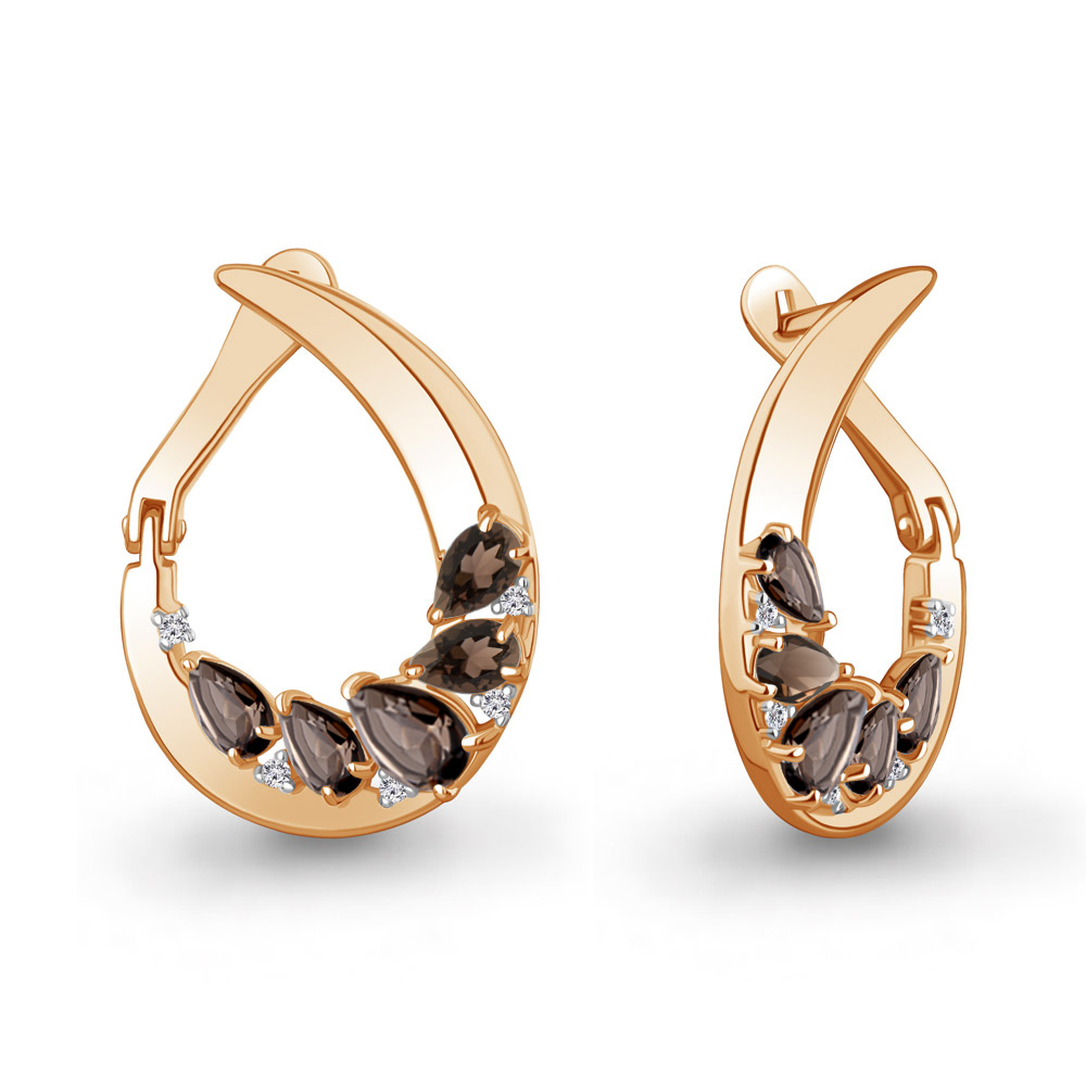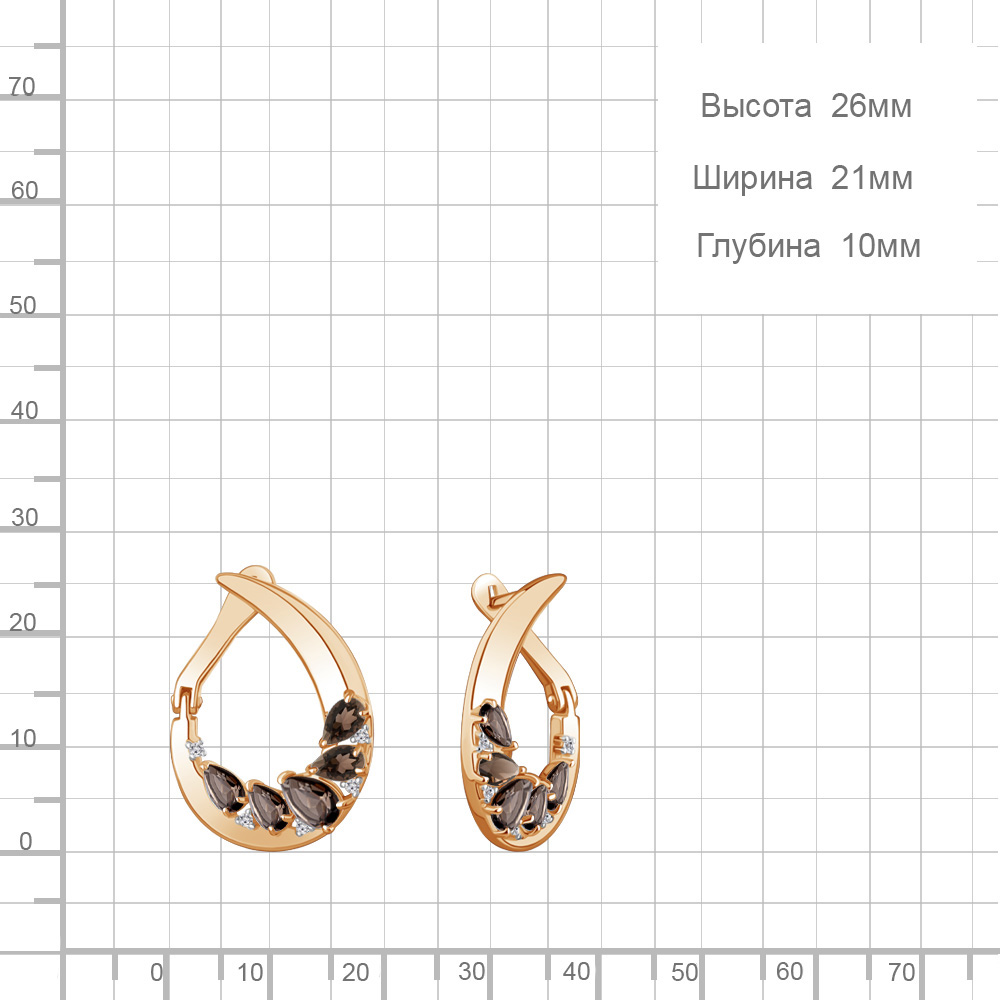 45018601А Серьги из Серебра с кварцами дымчатыми, фианитами