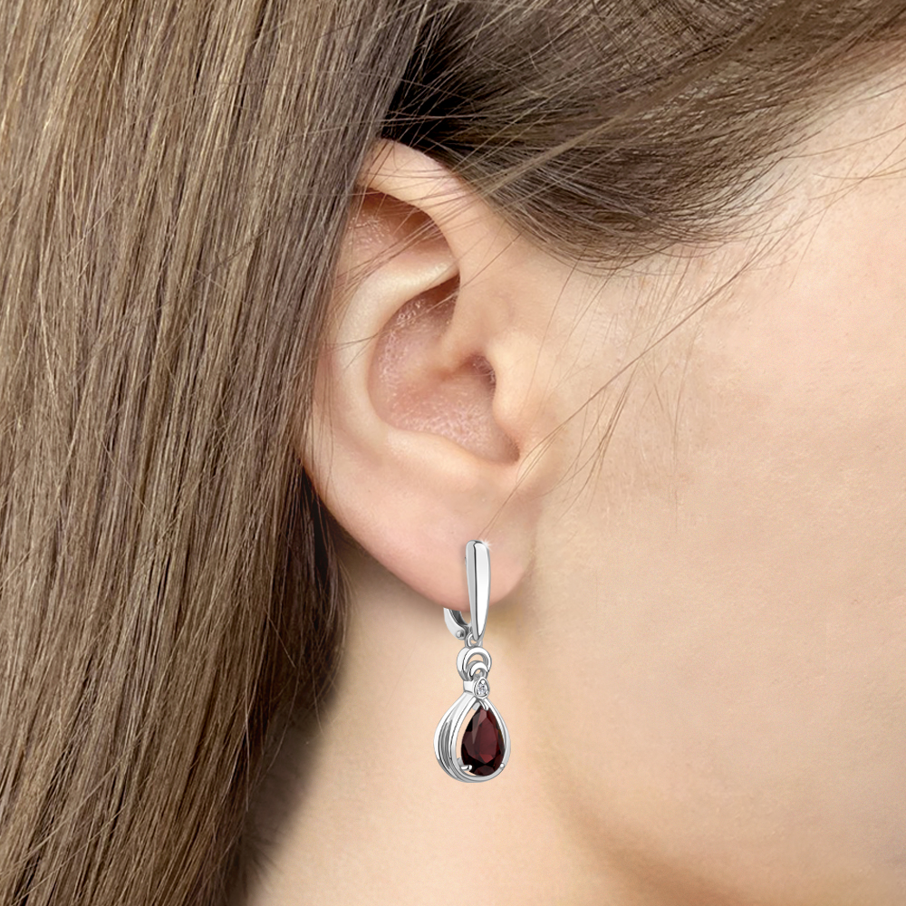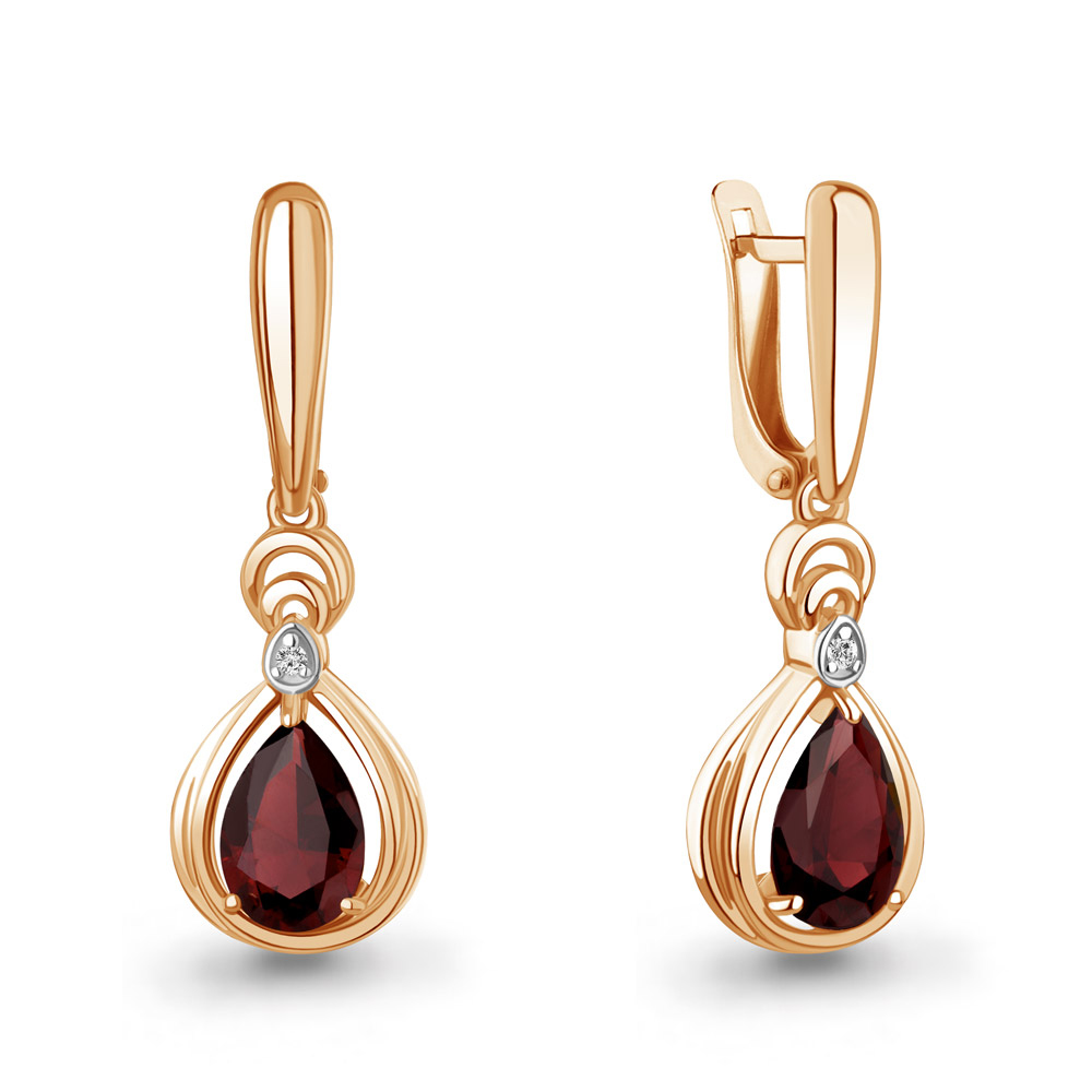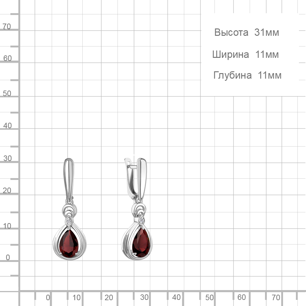 45019403А Серьги из Серебра с гранатами, фианитами