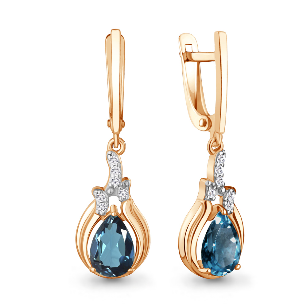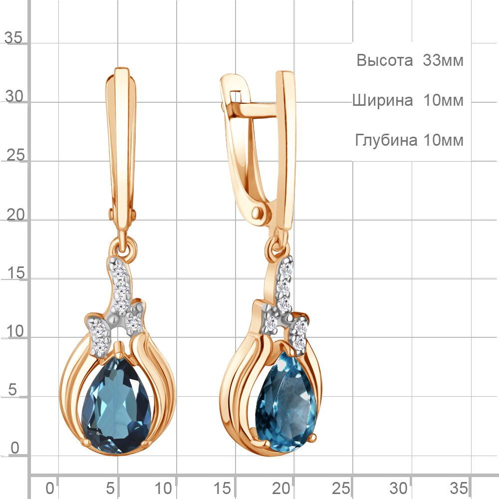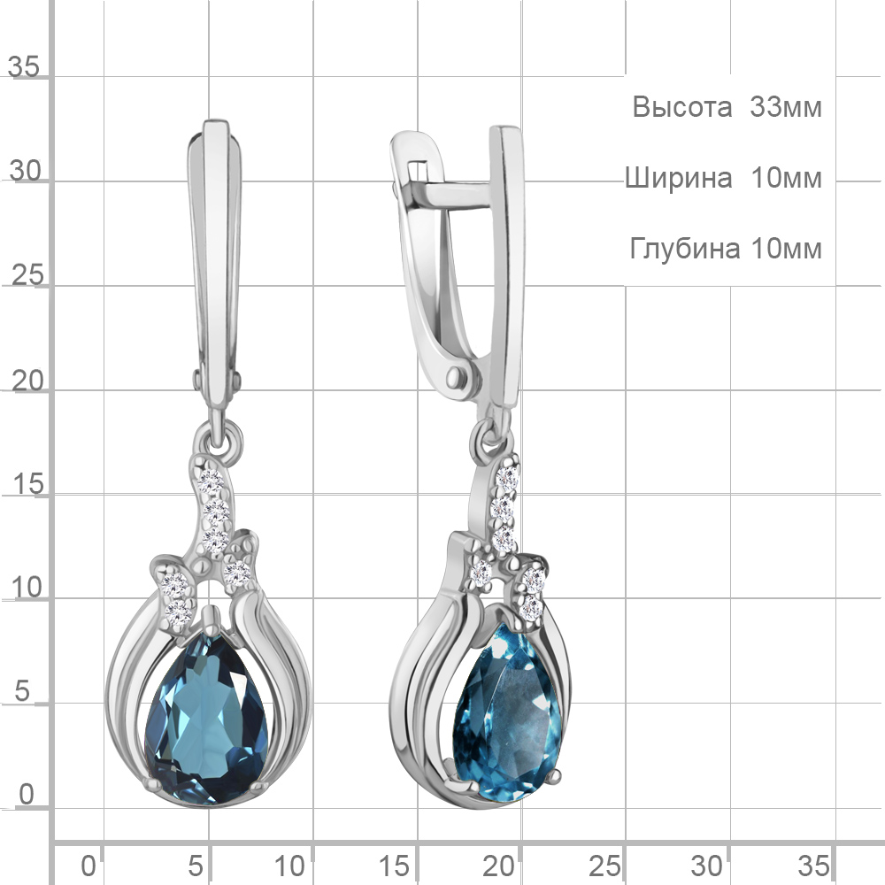 45019808А Серьги из Серебра с топазами лондон блю, фианитами