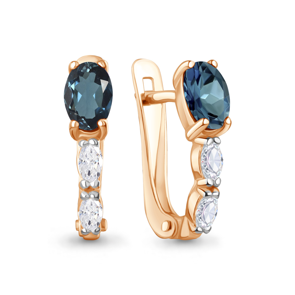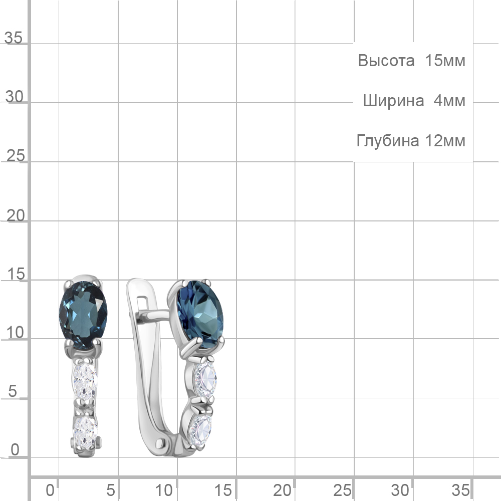 45025608 Серьги из Серебра с топазами лондон блю, фианитами