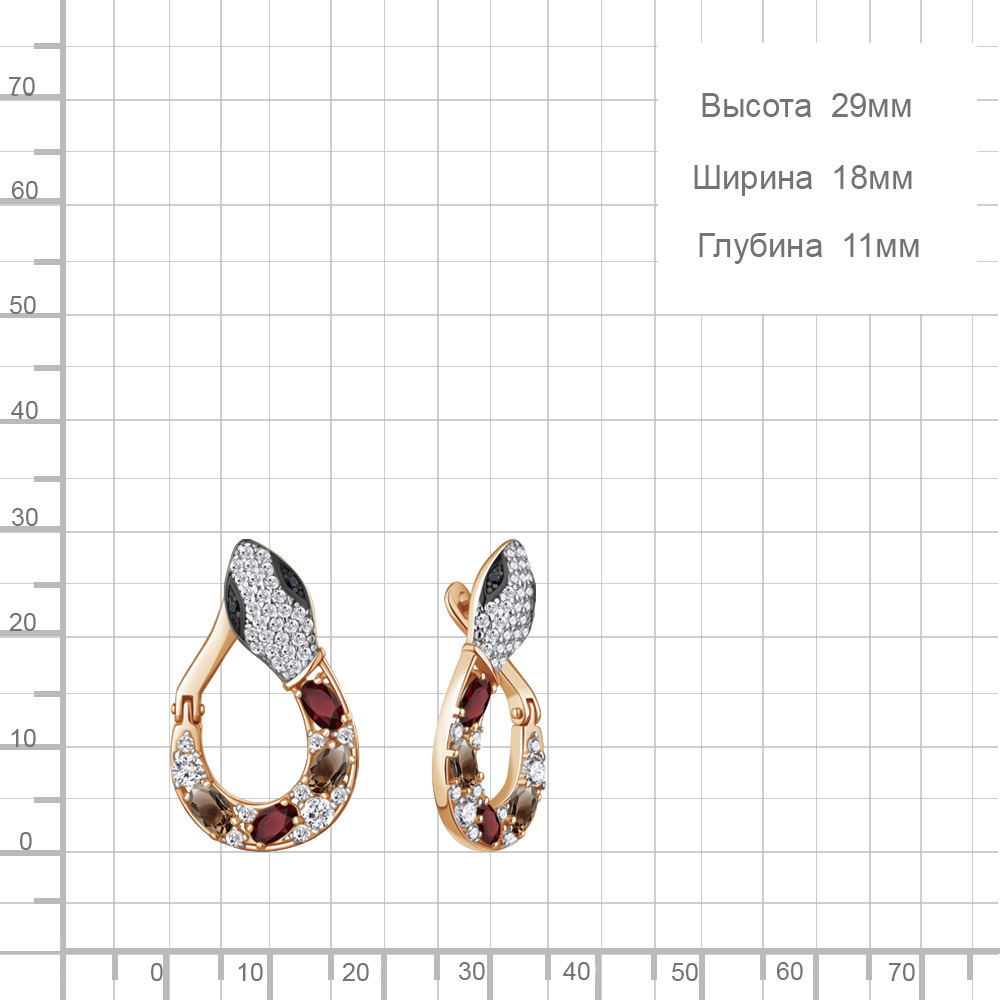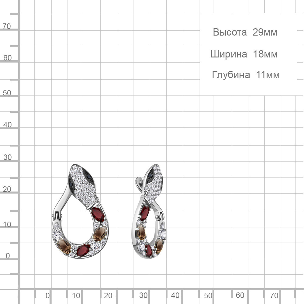 45026436АЧ Серьги из Серебра с гранатами, кварцами дымчатыми, нанокристаллами, фианитами