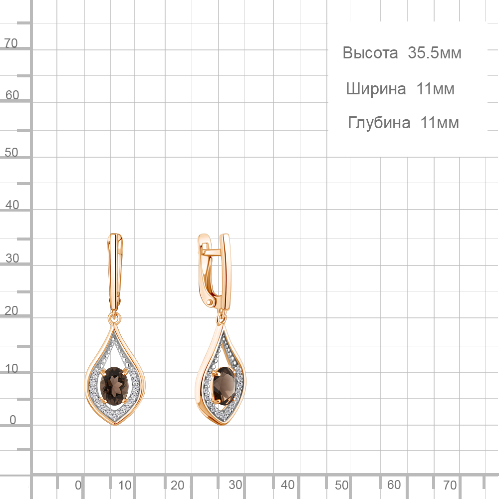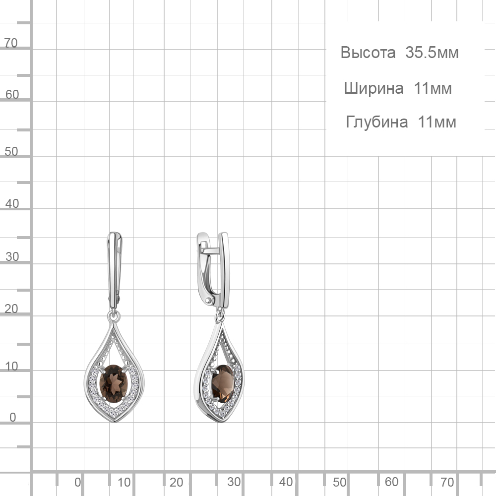 45028401А Серьги из Серебра с кварцами дымчатыми, фианитами
