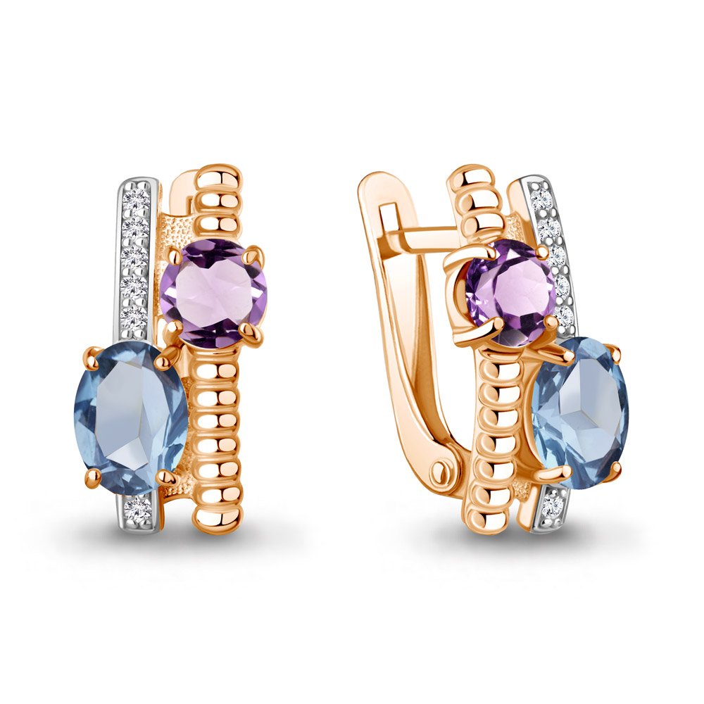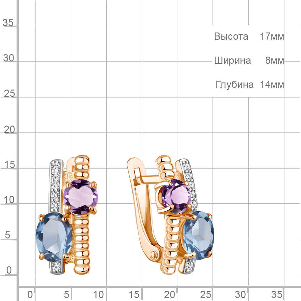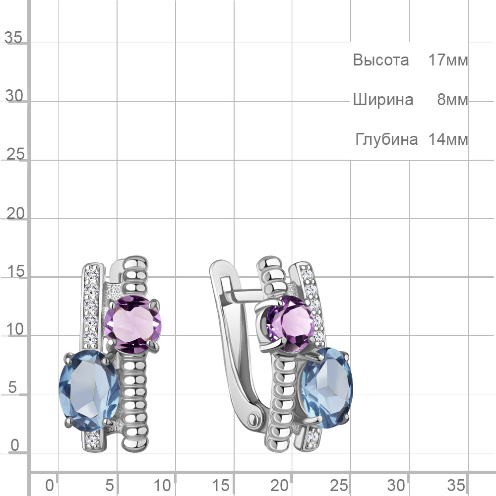 45028630А Серьги из Серебра с аметистами, топазами свисс блю, фианитами