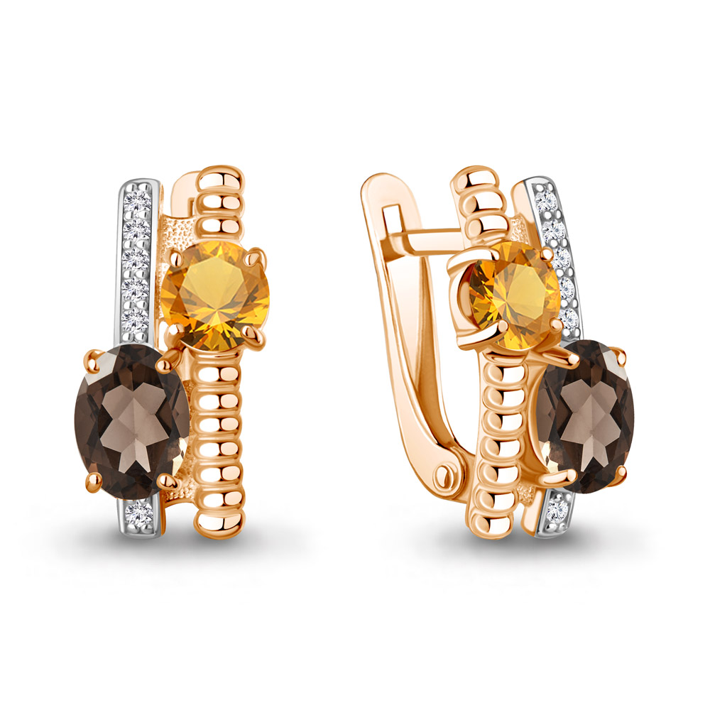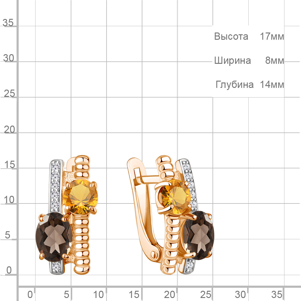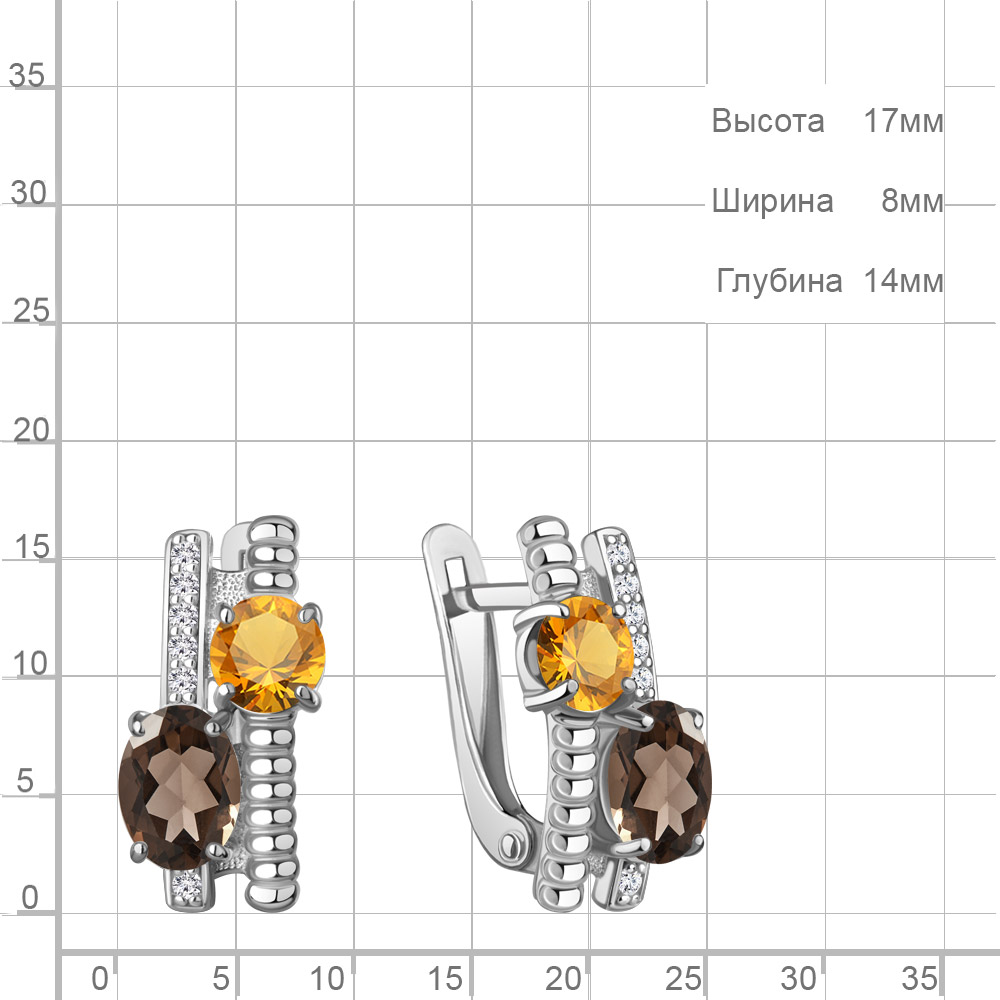 45028635А Серьги из Серебра с кварцами дымчатыми, фианитами, цитринами