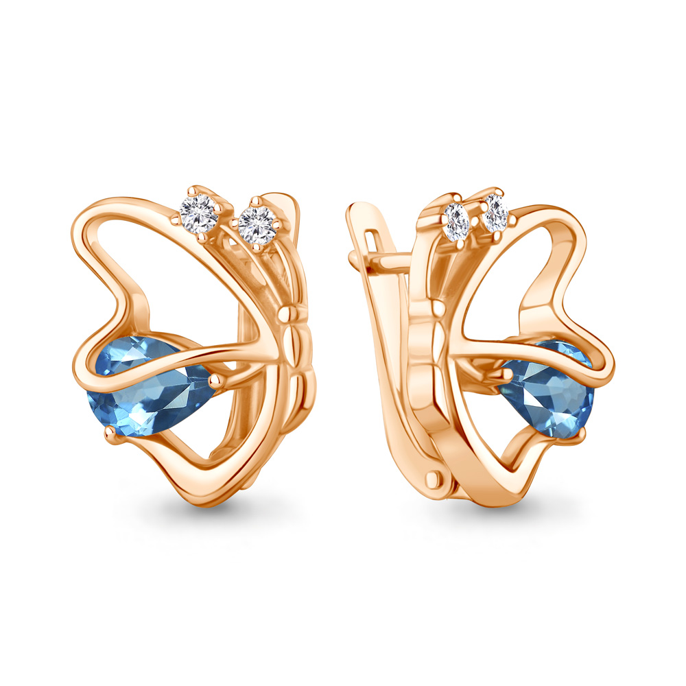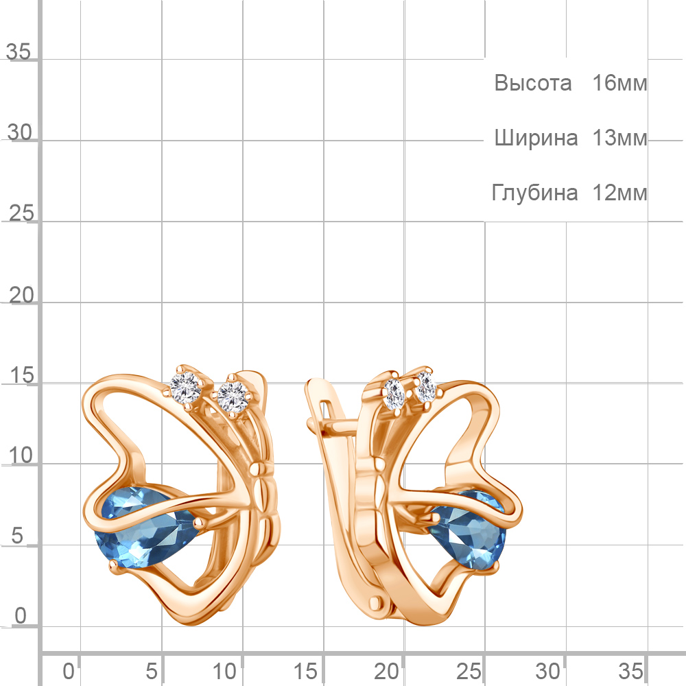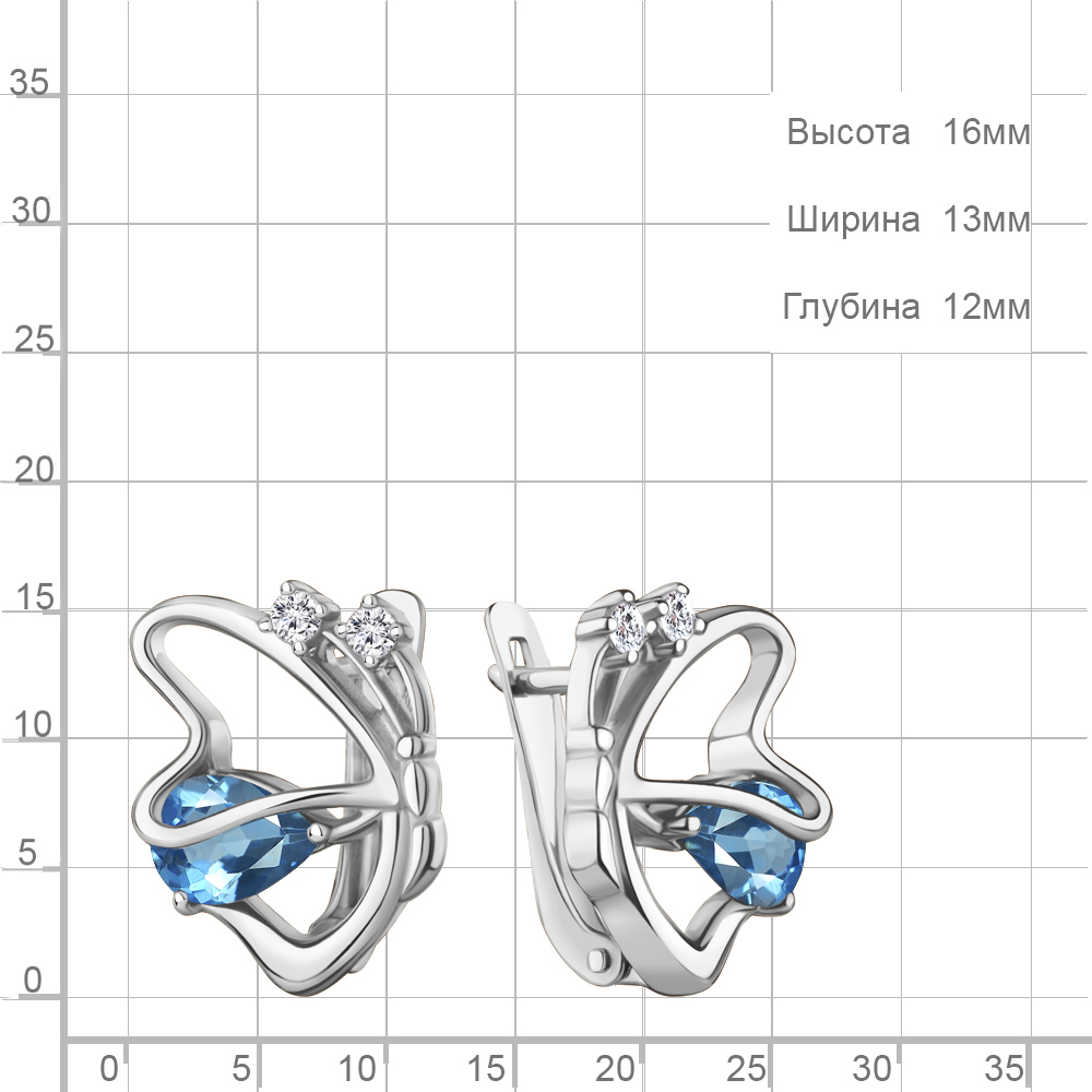 45029805А Серьги из Серебра с топазами свисс блю, фианитами