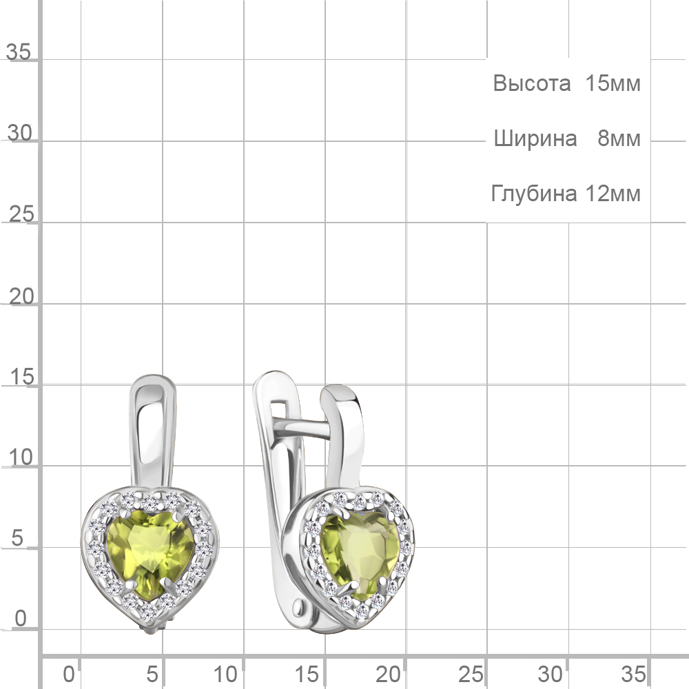 45030007А Серьги из Серебра с фианитами, хризолитами