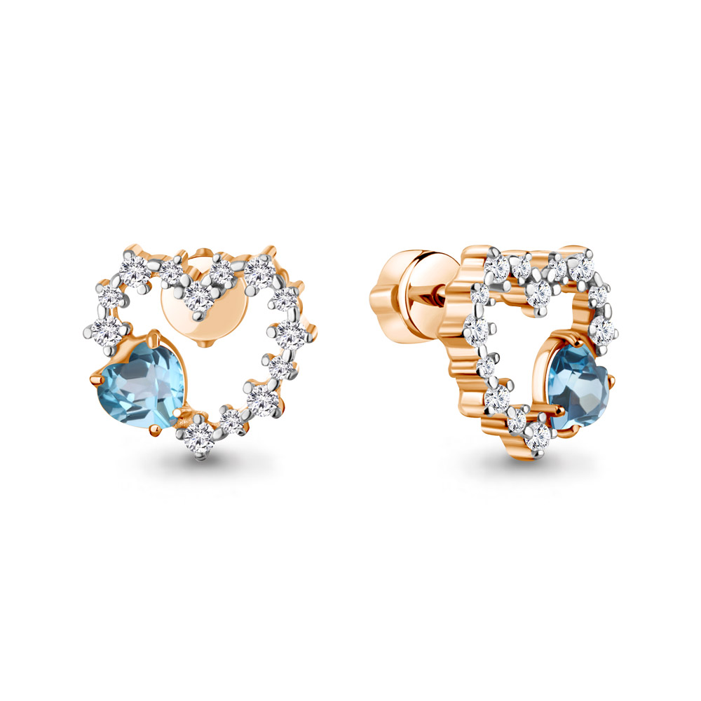 45031205А Серьги из Серебра с топазами свисс блю, фианитами