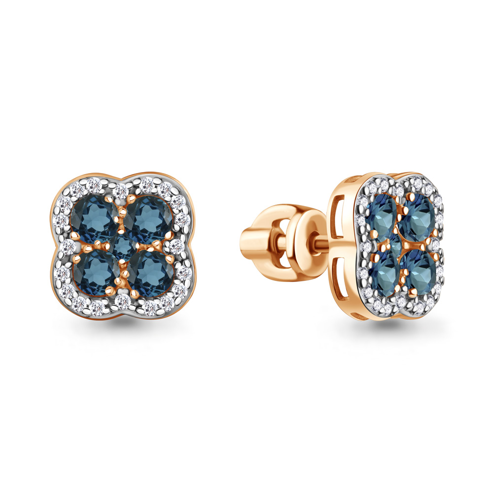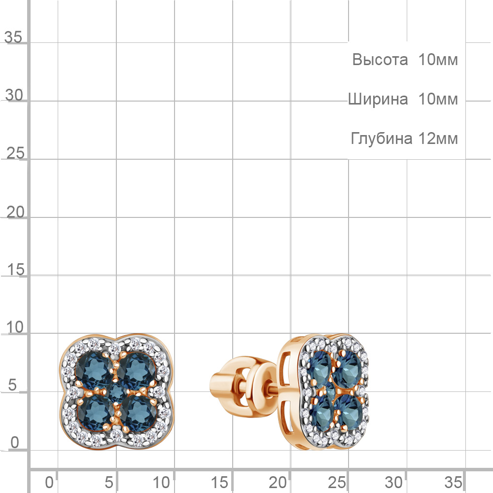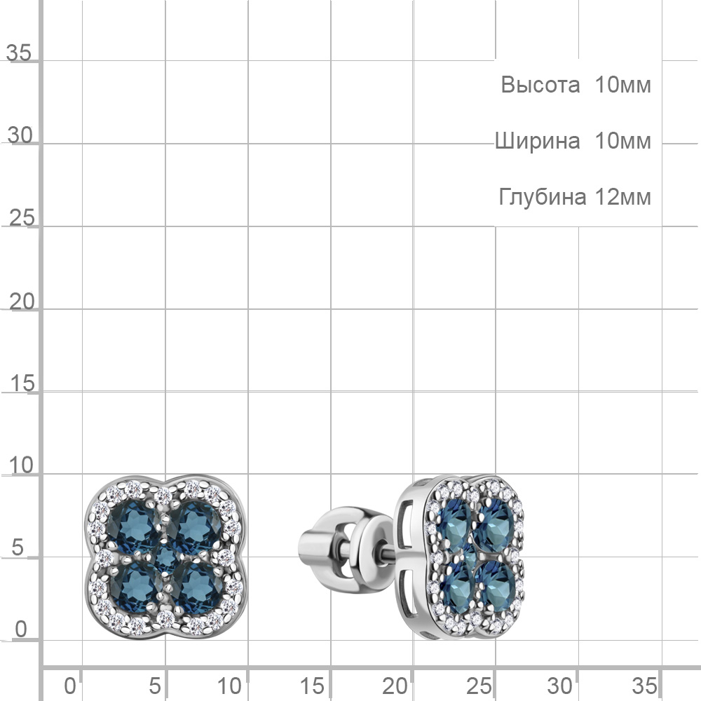 45032208А Серьги из Серебра с топазами лондон блю, фианитами