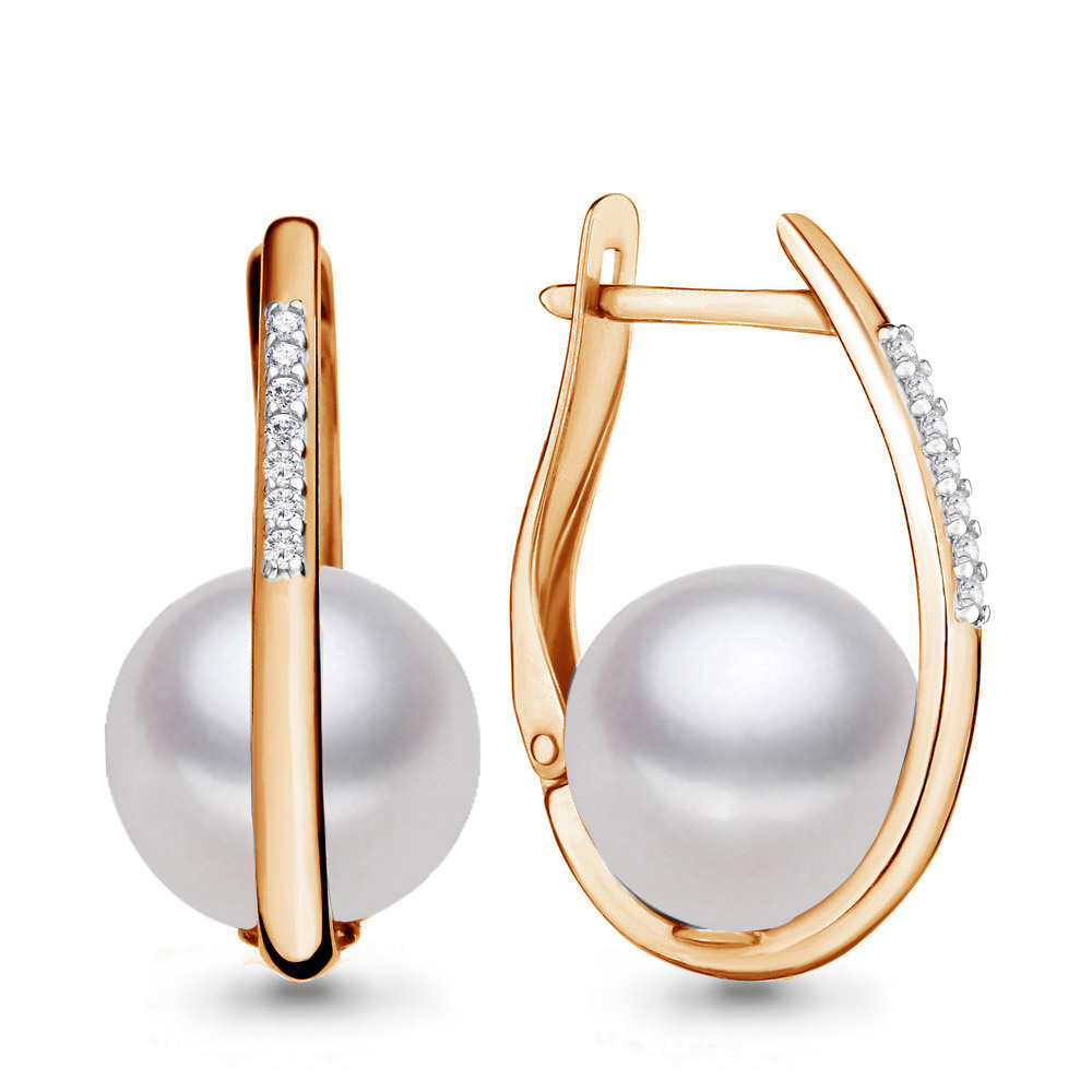 45566А Серьги из Серебра с фианитами, хрустальным жемчугом