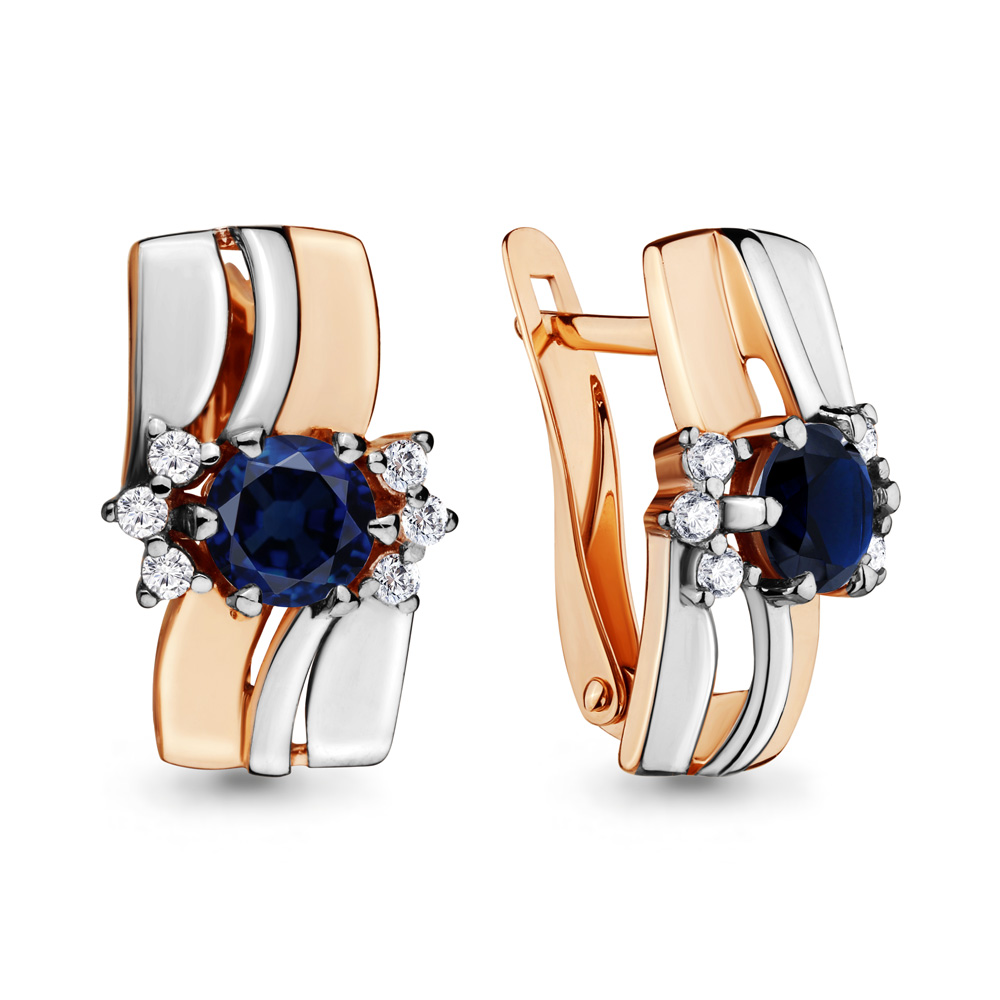 45887Б Серьги из Серебра с наносапфирами, фианитами из коллекции "Клеопатра"