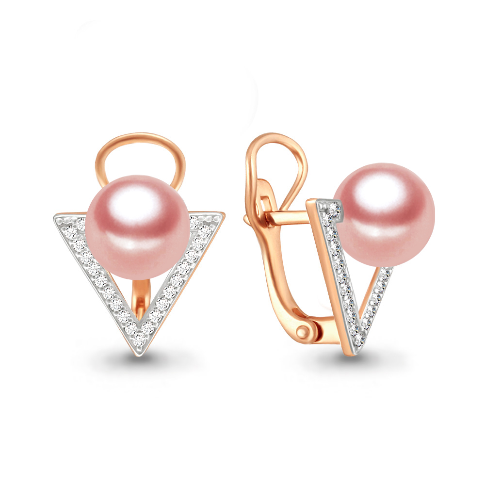 46315В Серьги из Серебра с имитациями жемчуга, фианитами