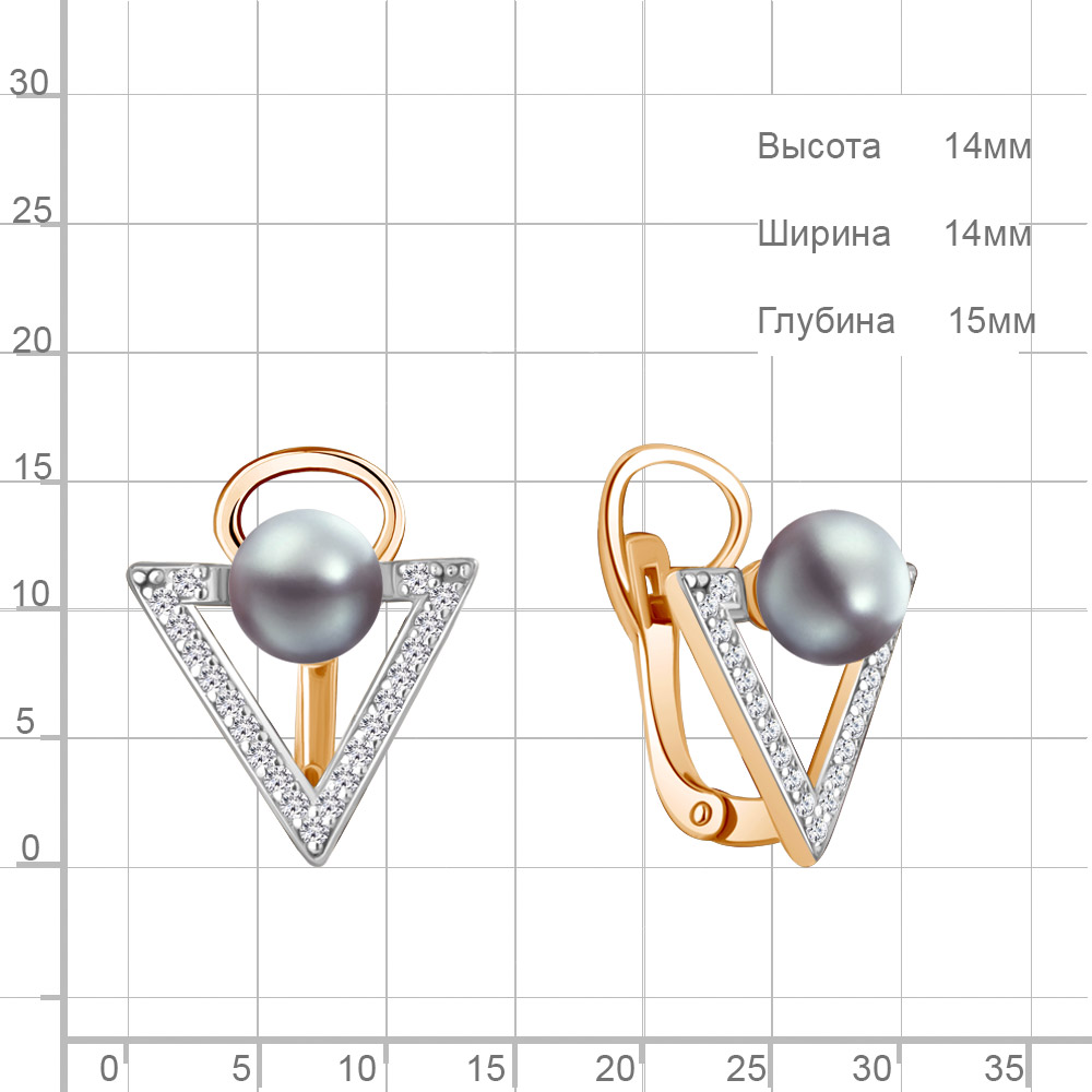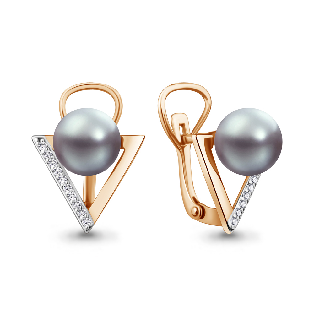 46316Я Серьги из Серебра с имитациями жемчуга, фианитами