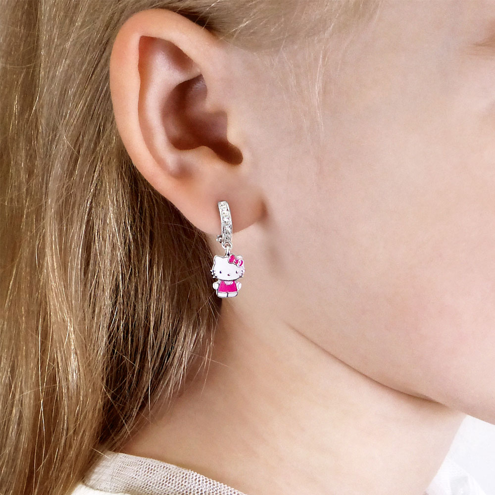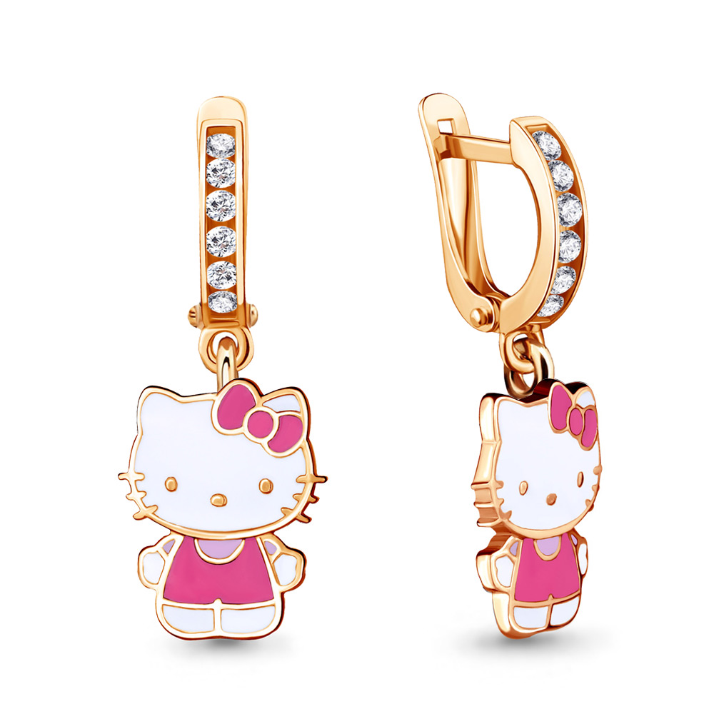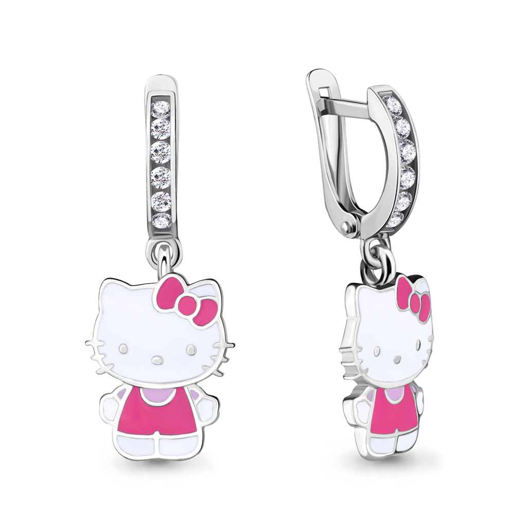46434А Серьги из Серебра с фианитами, эмалью из коллекции "Hello Kitty"