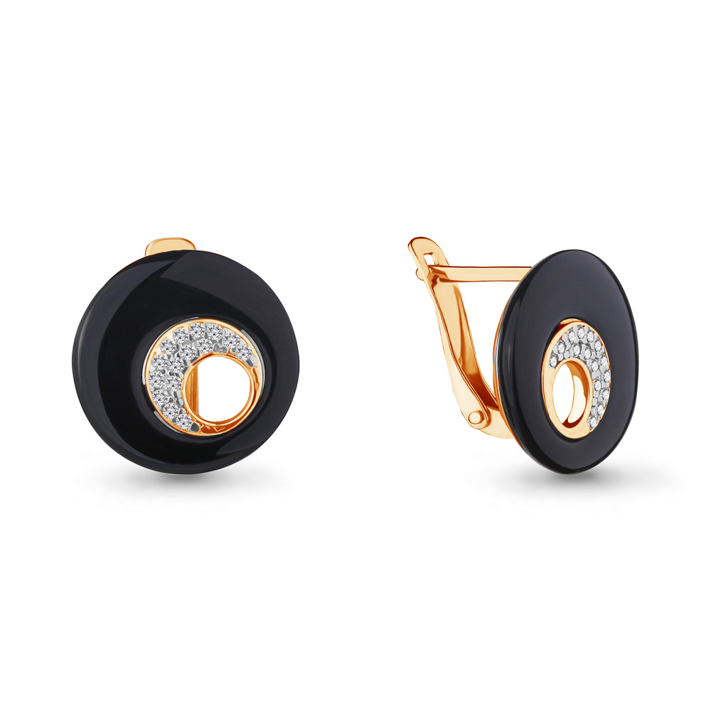 46795А Серьги из Серебра с керамическим покрытием, фианитами