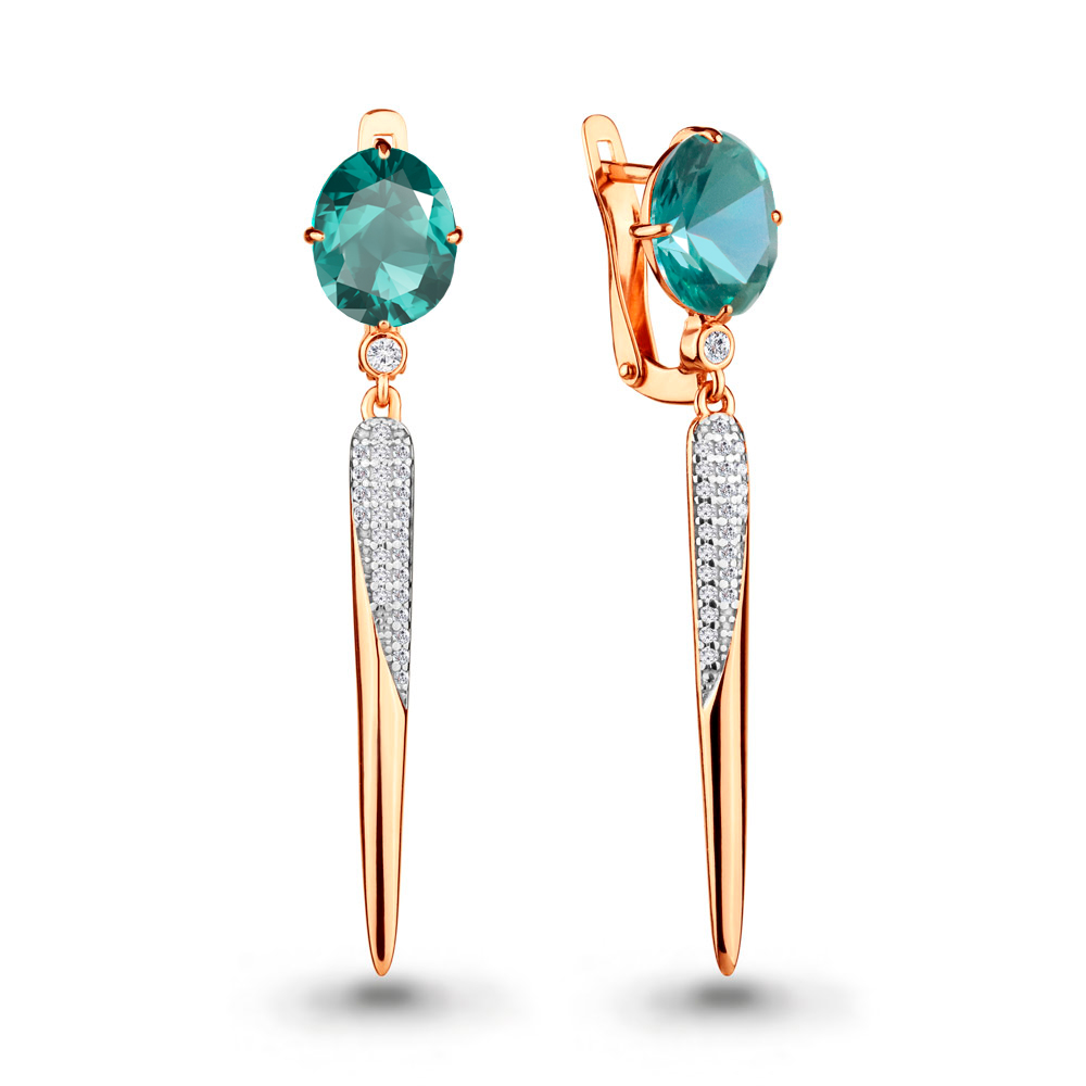 4702488А Серьги из Серебра с нанотурмалинами иск., фианитами