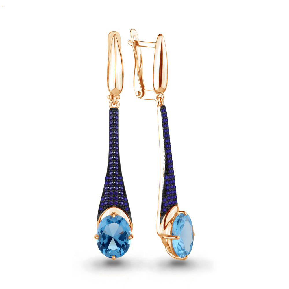 4702592Б Серьги из Серебра с наносапфирами, нанотопазами свисс