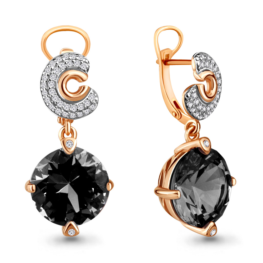 4702983А Серьги из Серебра с нанокристаллом греем иском., фианитами