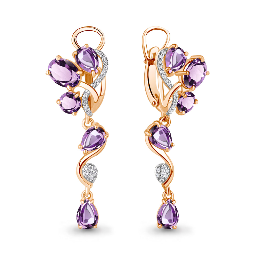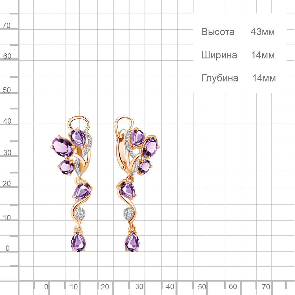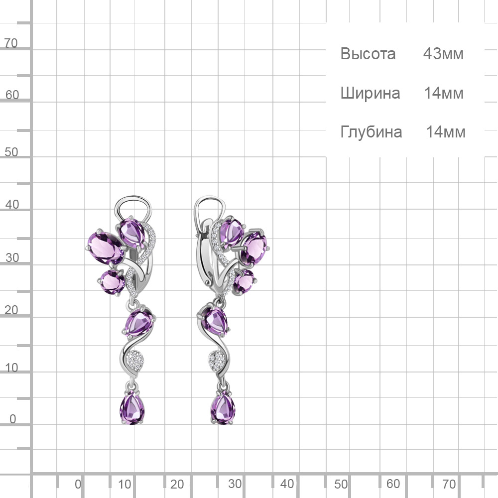 4706204А Серьги из Серебра с аметистами, фианитами