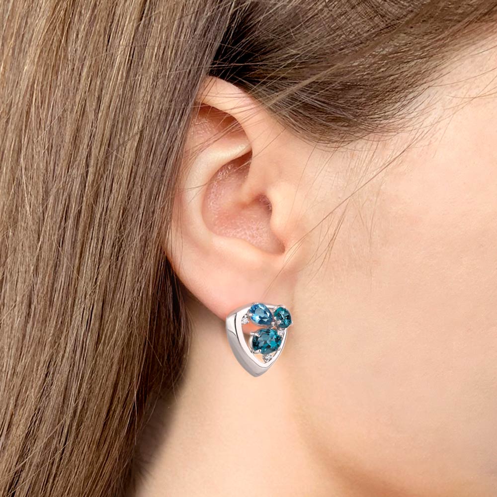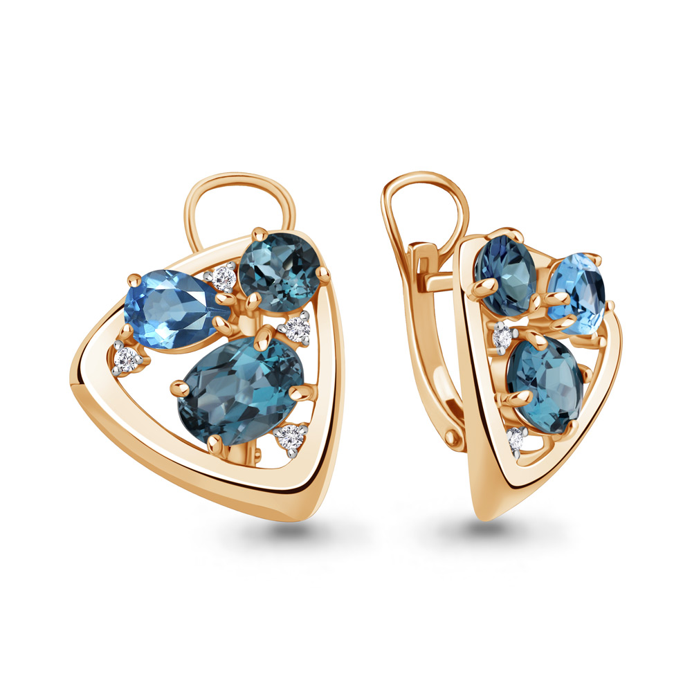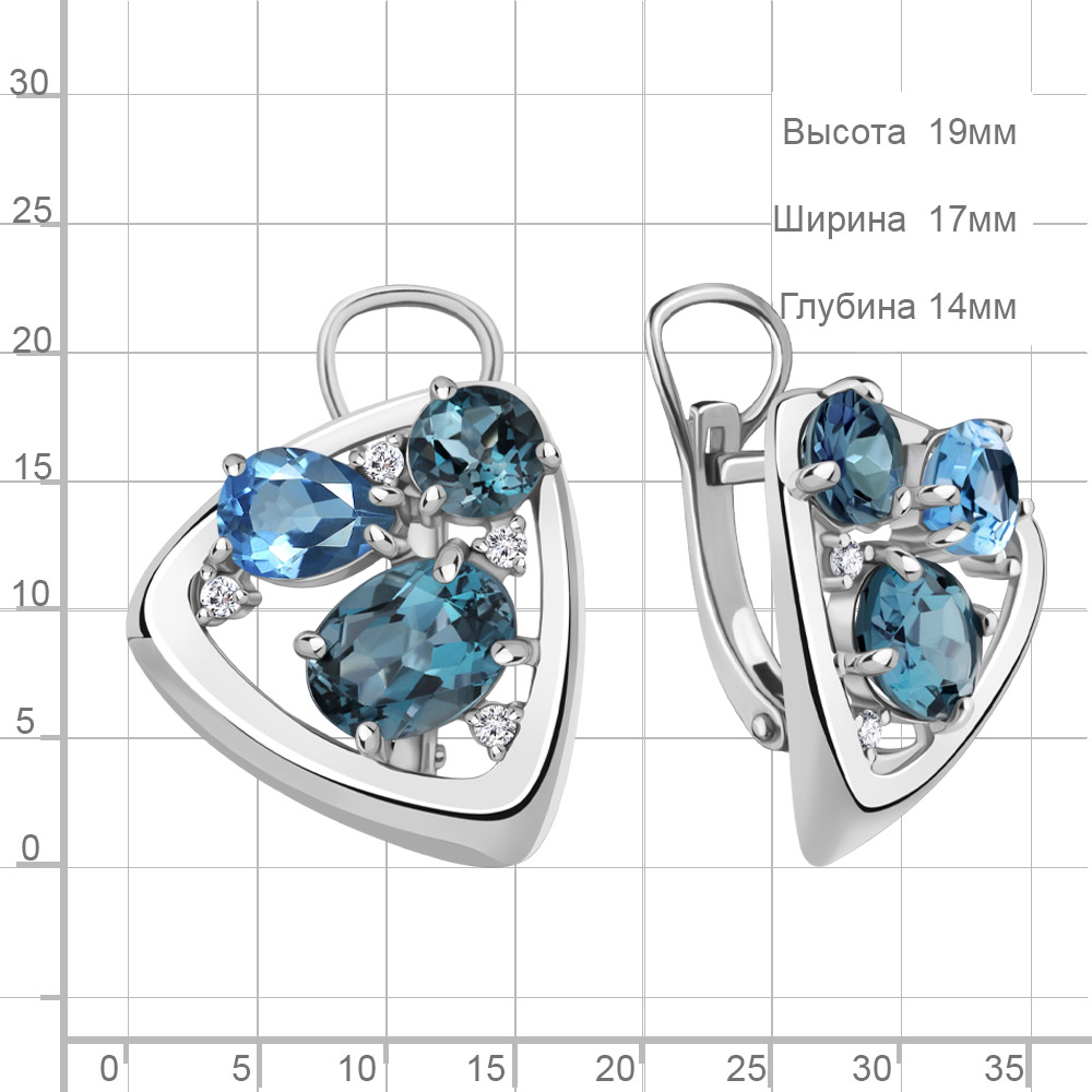 4706762А Серьги из Серебра с топазами лондон блю, топазами свисс блю, фианитами