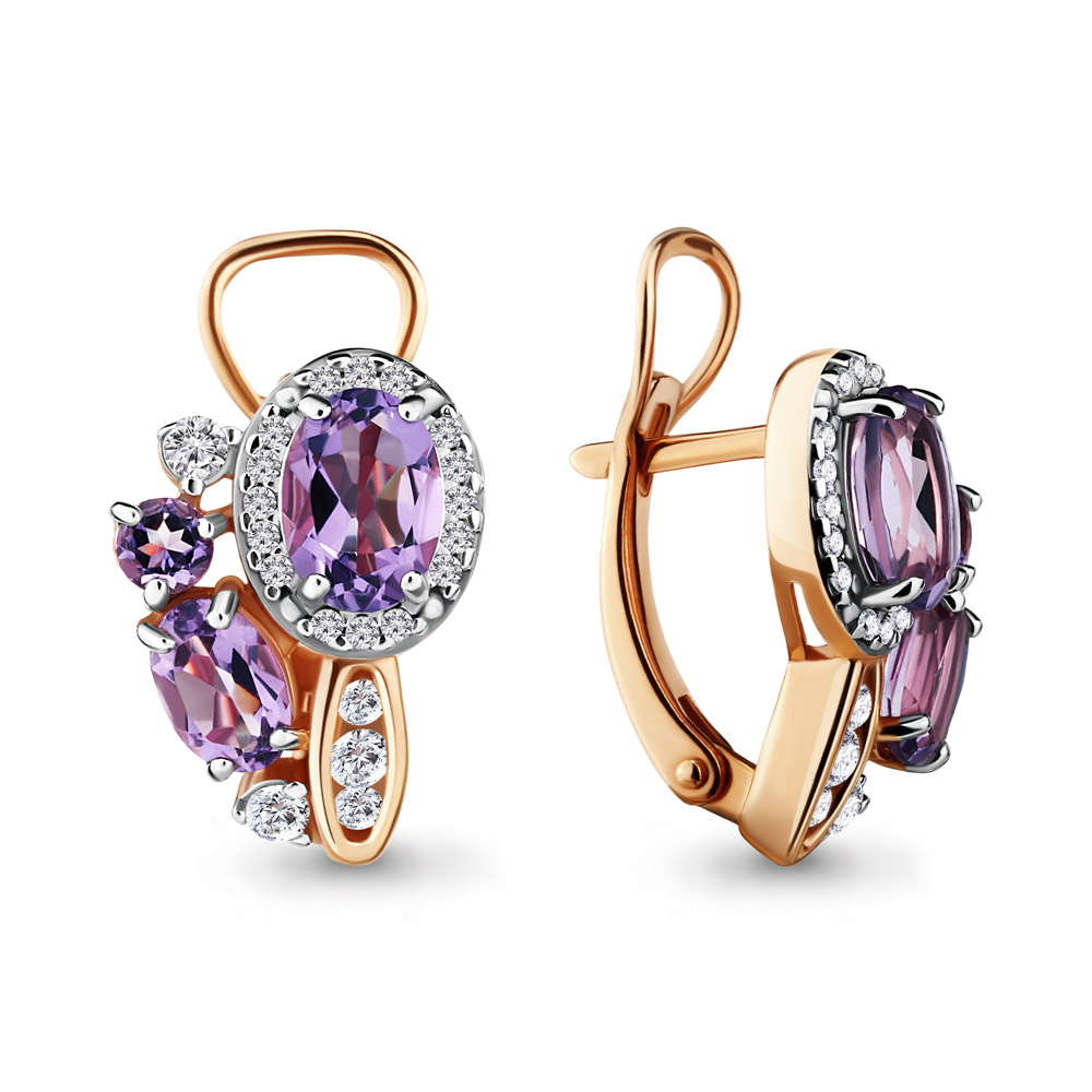 4707904А Серьги из Серебра с аметистами, фианитами
