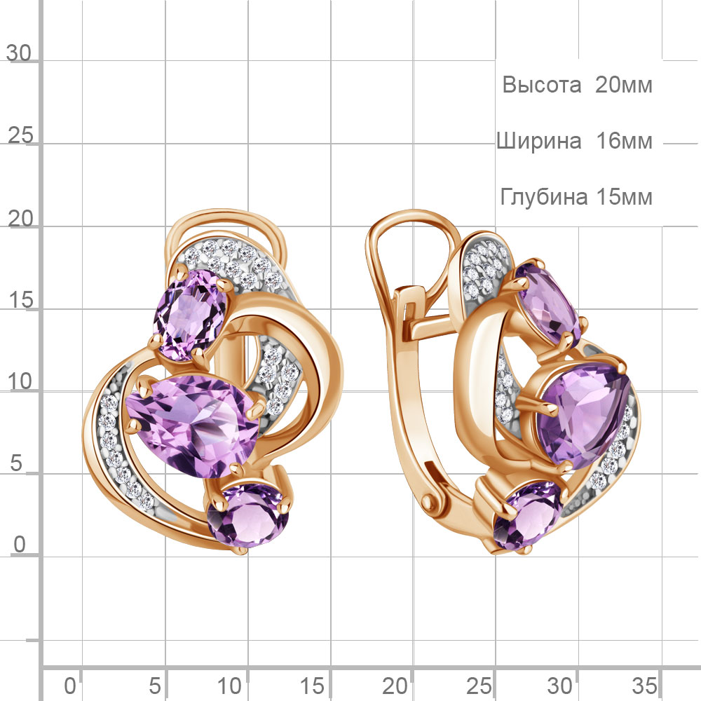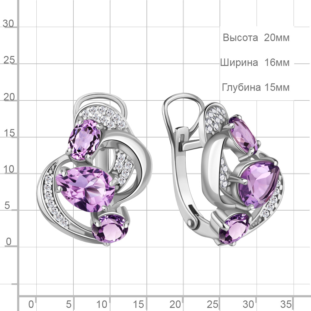 4708904А Серьги из Серебра с аметистами, фианитами