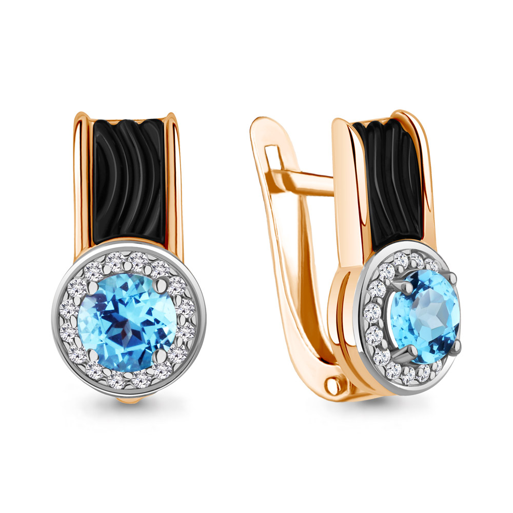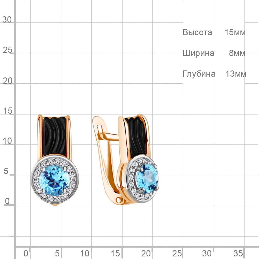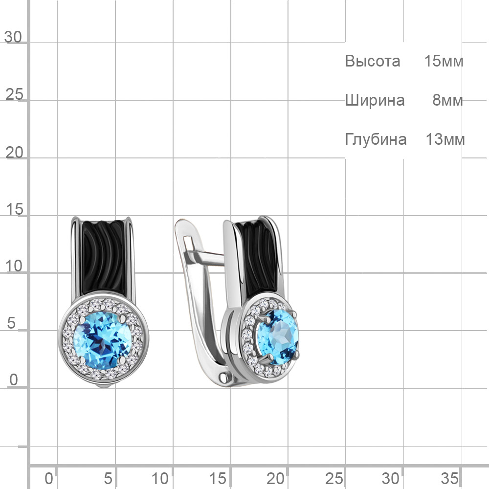 4712605А Серьги из Серебра с керамическим покрытием, топазами свисс блю, фианитами из коллекции "Neo"