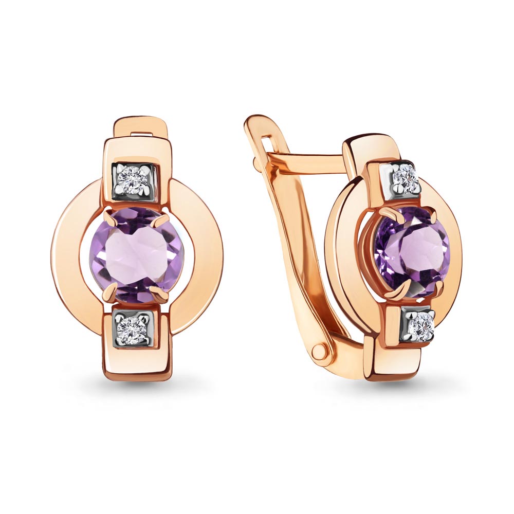 4714504А Серьги из Серебра с аметистами, фианитами