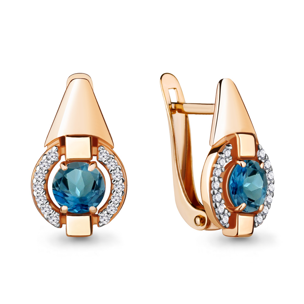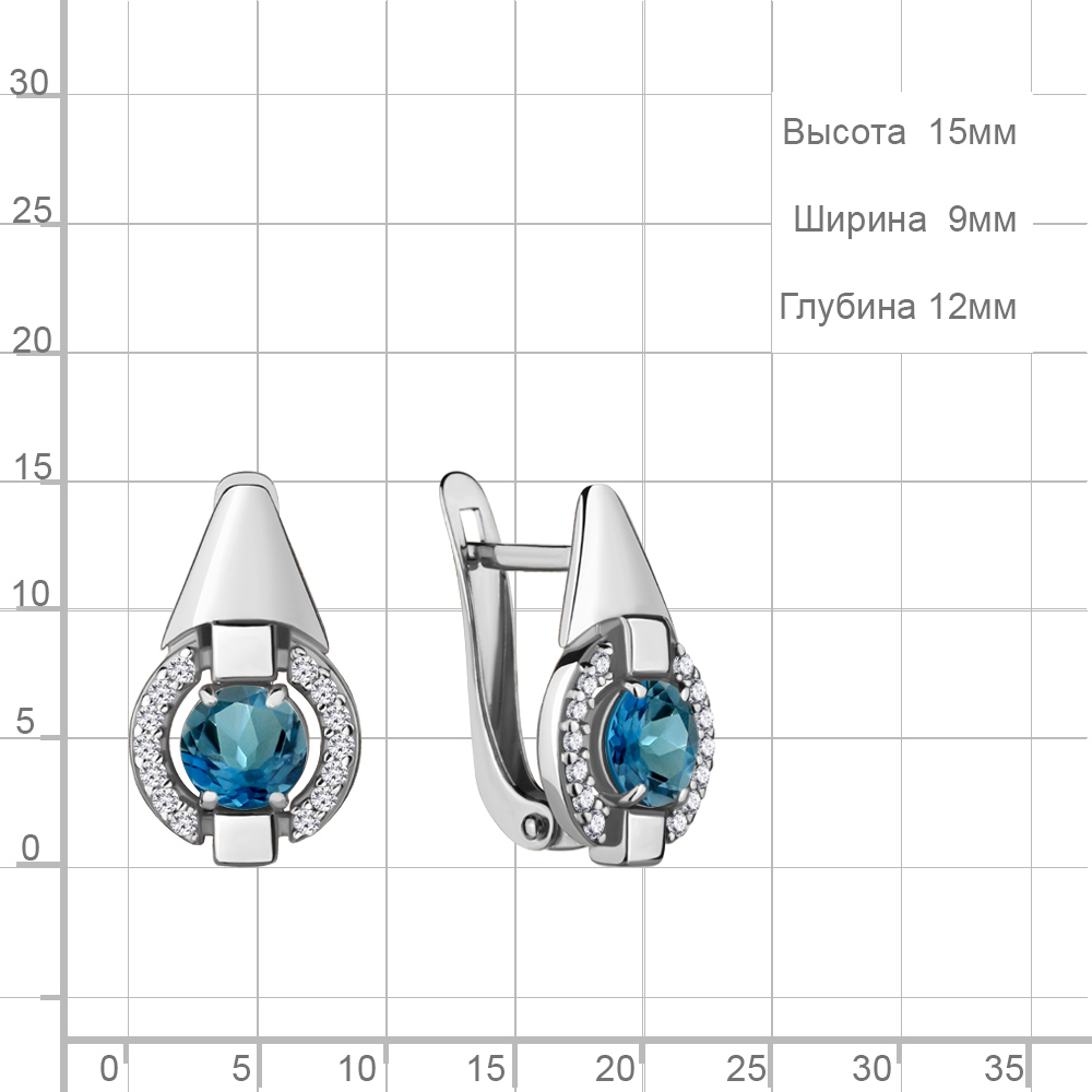 4714608А Серьги из Серебра с топазами лондон блю, фианитами