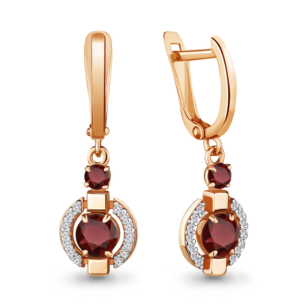 4714703А Серьги из Серебра с гранатами, фианитами