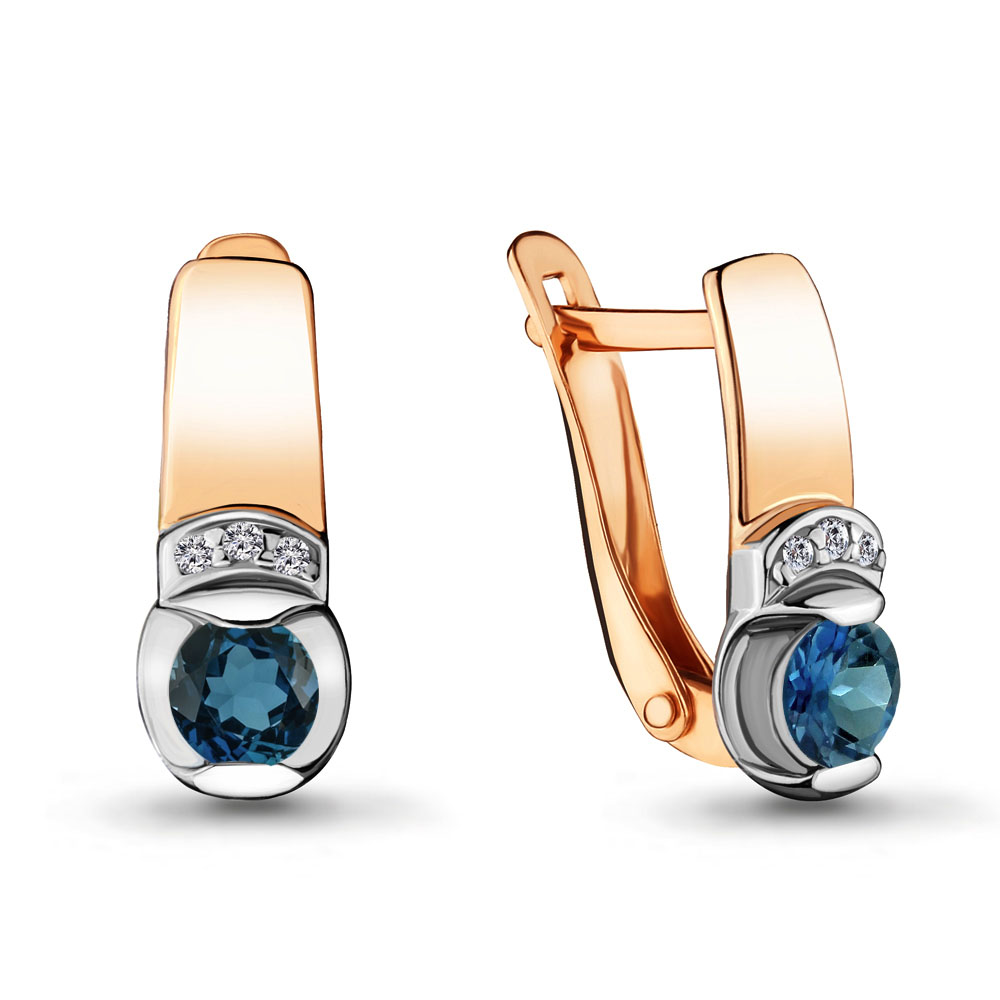 4715308А Серьги из Серебра с топазами лондон блю, фианитами