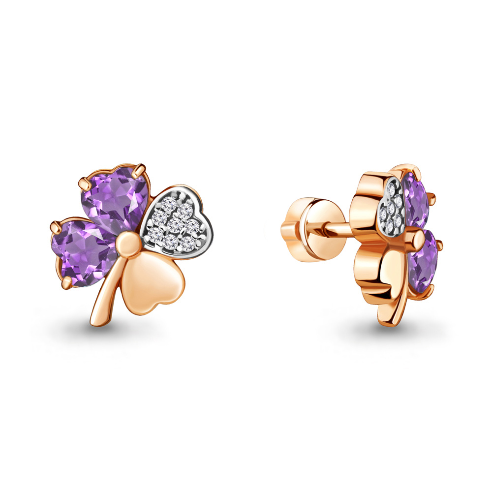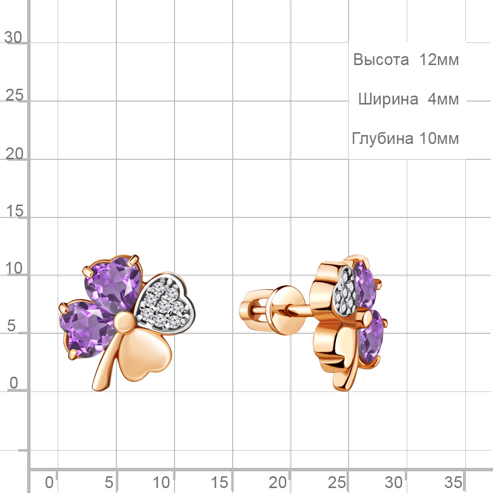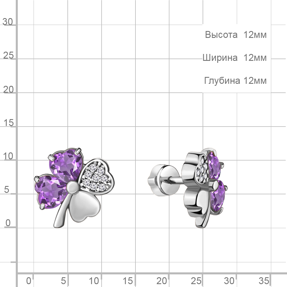 4715604А Серьги из Серебра с аметистами, фианитами