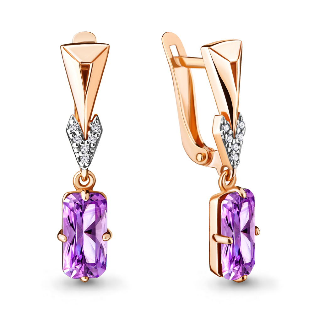 4716884А Серьги из Серебра с наноаметистами иск., фианитами из коллекции "Каприз"