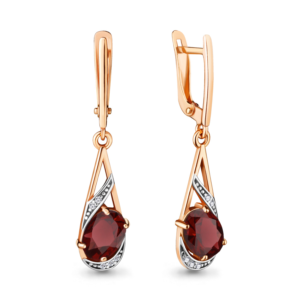 4717403А Серьги из Серебра с гранатами, фианитами