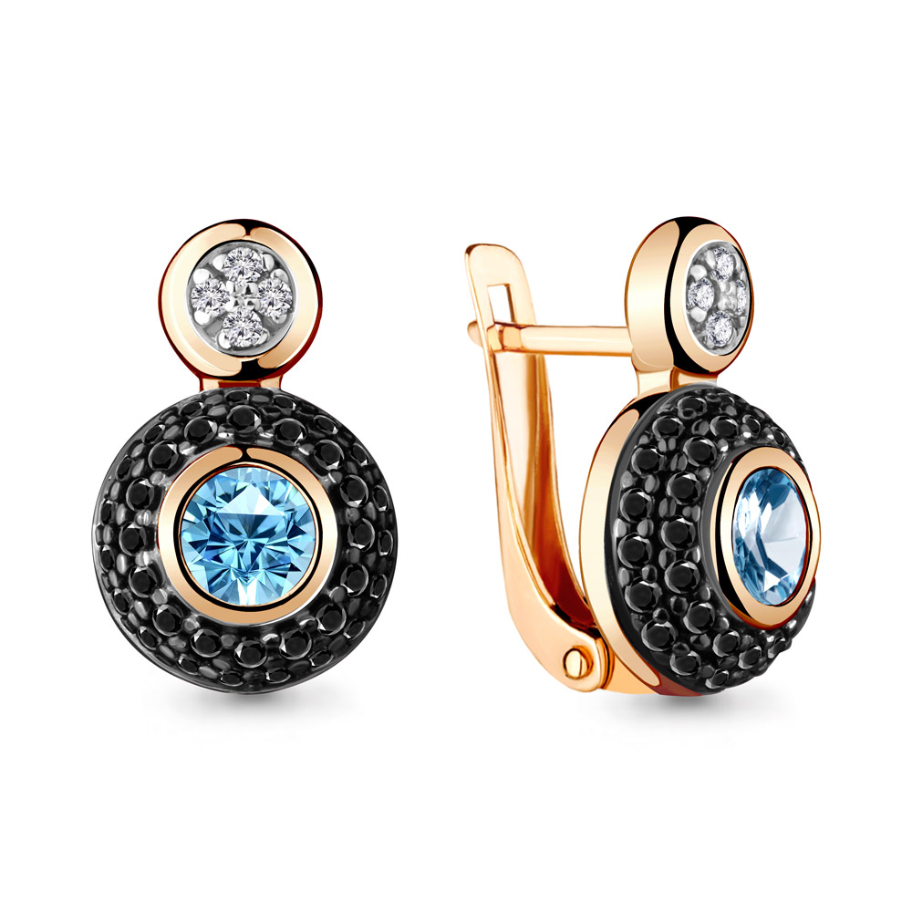 4718605АЧ Серьги из Серебра с нанокристаллами, топазами свисс блю, фианитами
