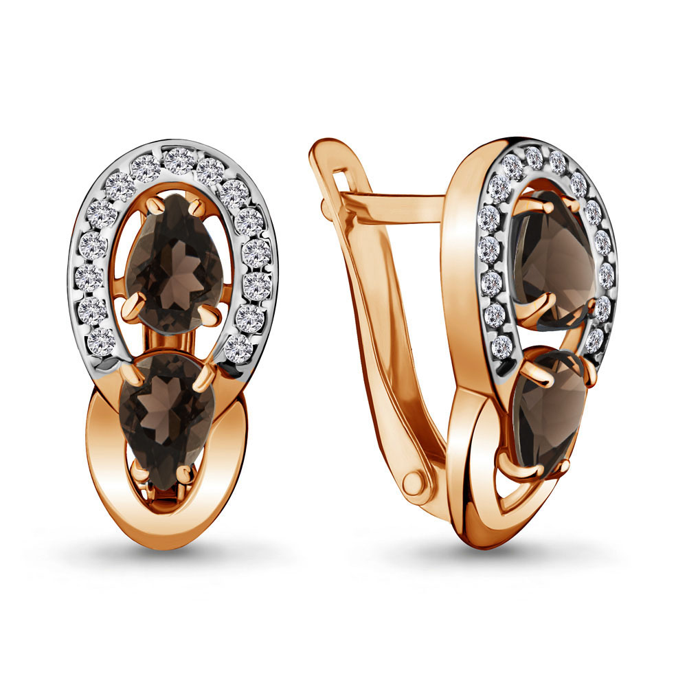 4720901А Серьги из Серебра с кварцами дымчатыми, фианитами