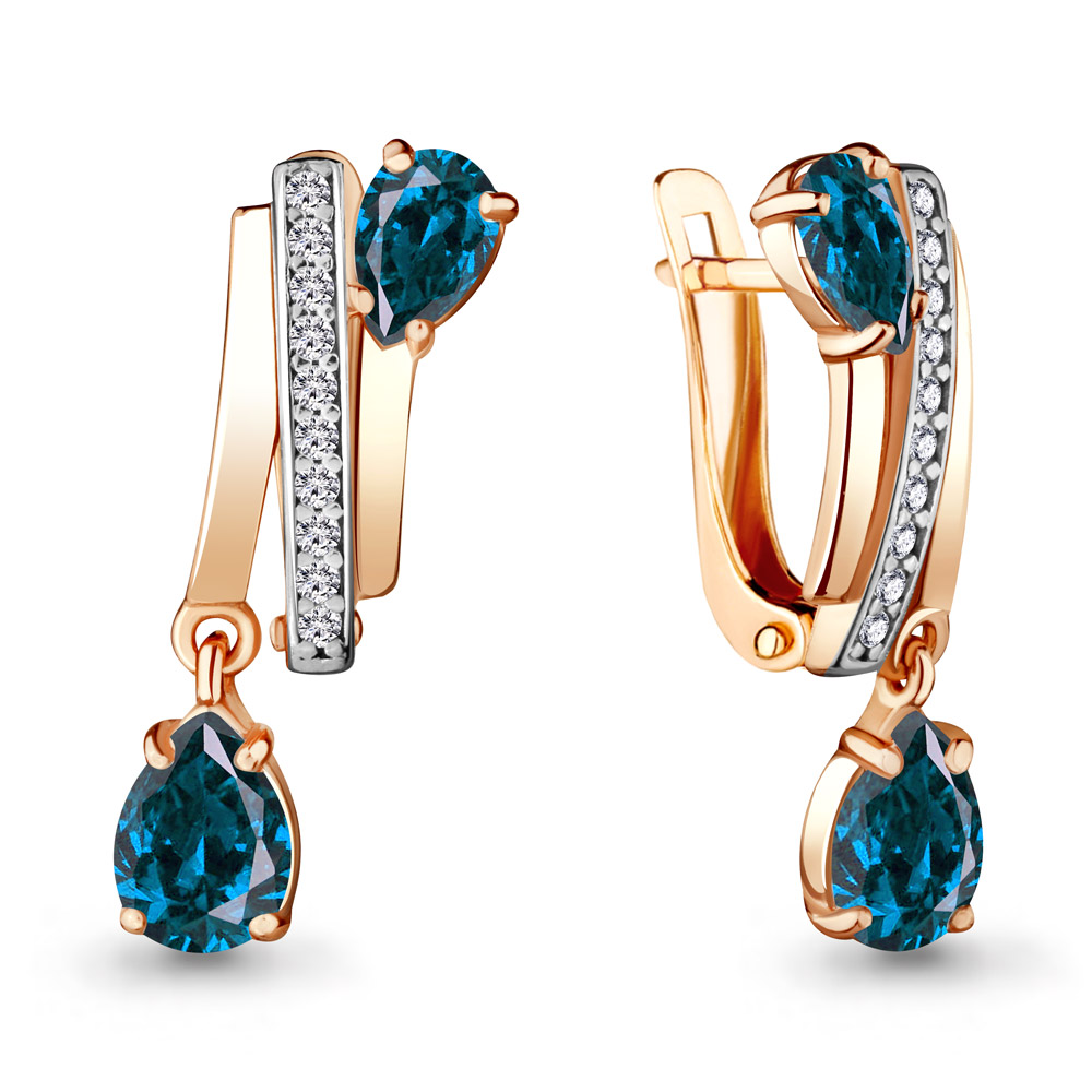 4721208А Серьги из Серебра с топазами лондон блю, фианитами