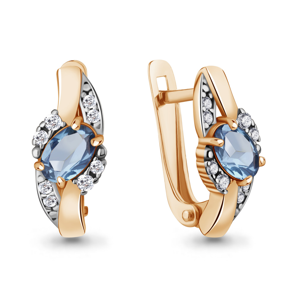 4723405А Серьги из Серебра с топазами свисс блю, фианитами