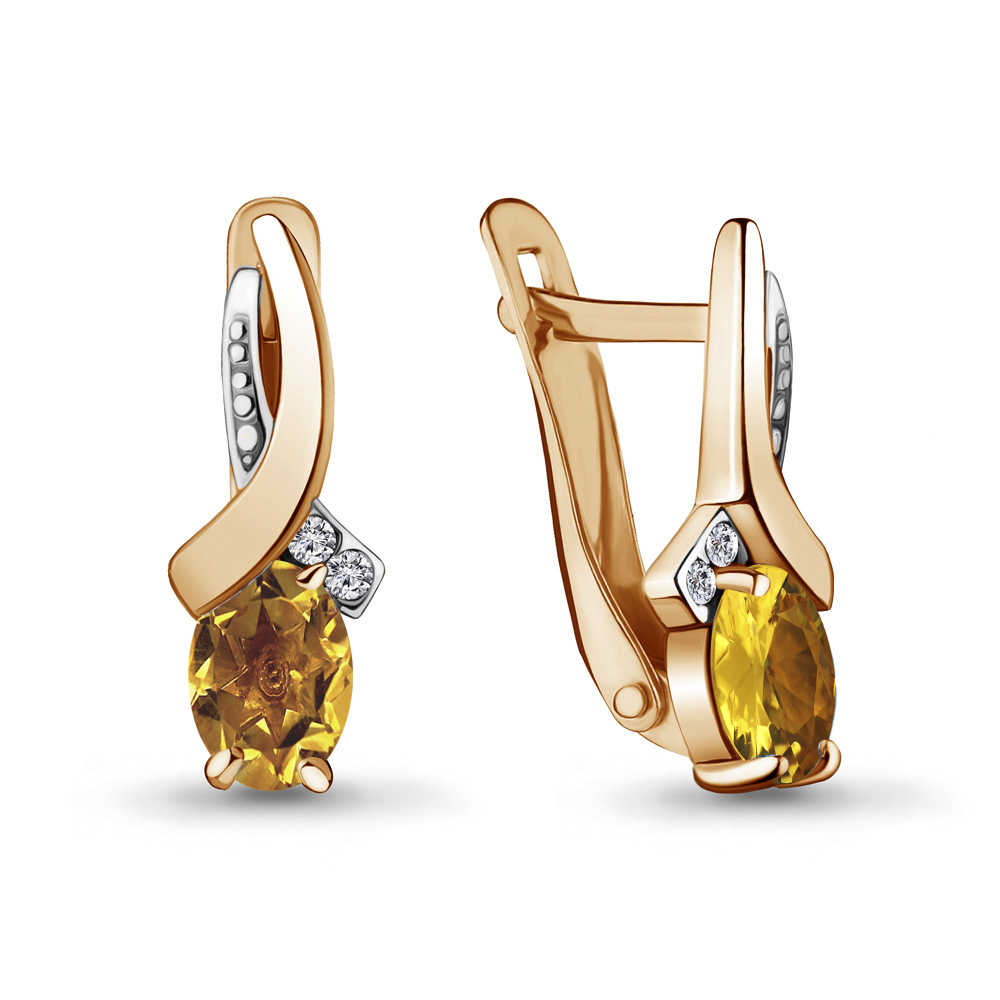 4723506А Серьги из Серебра с фианитами, цитринами