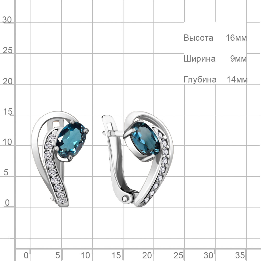4723708А Серьги из Серебра с топазами лондон блю, фианитами