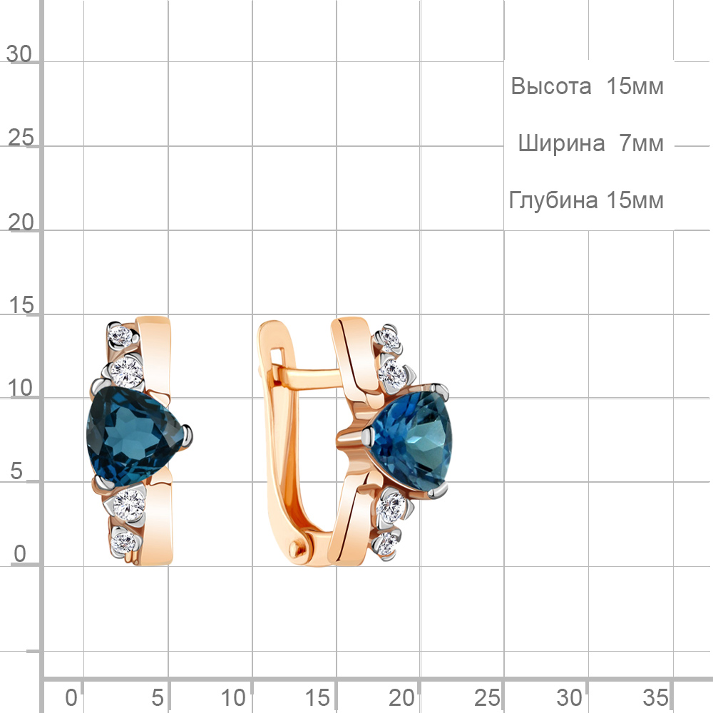 4738508А Серьги из Серебра с топазами лондон блю, фианитами