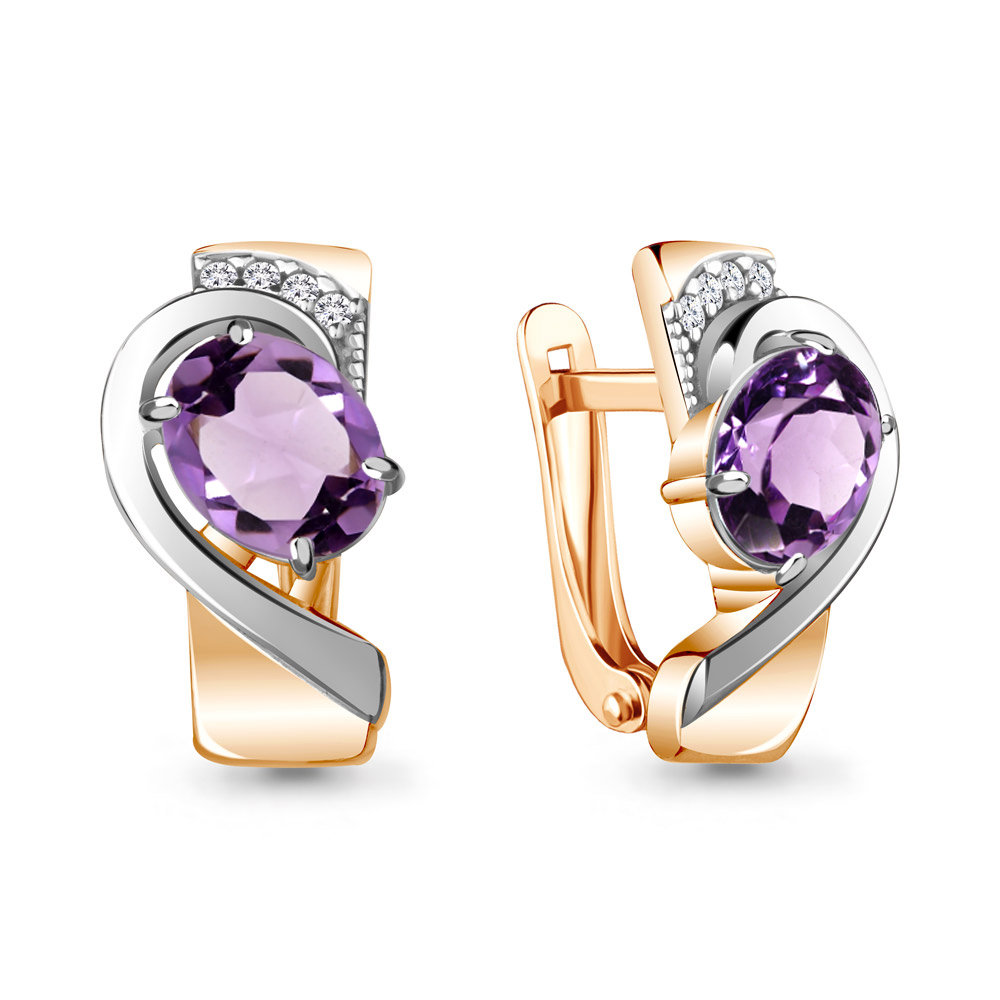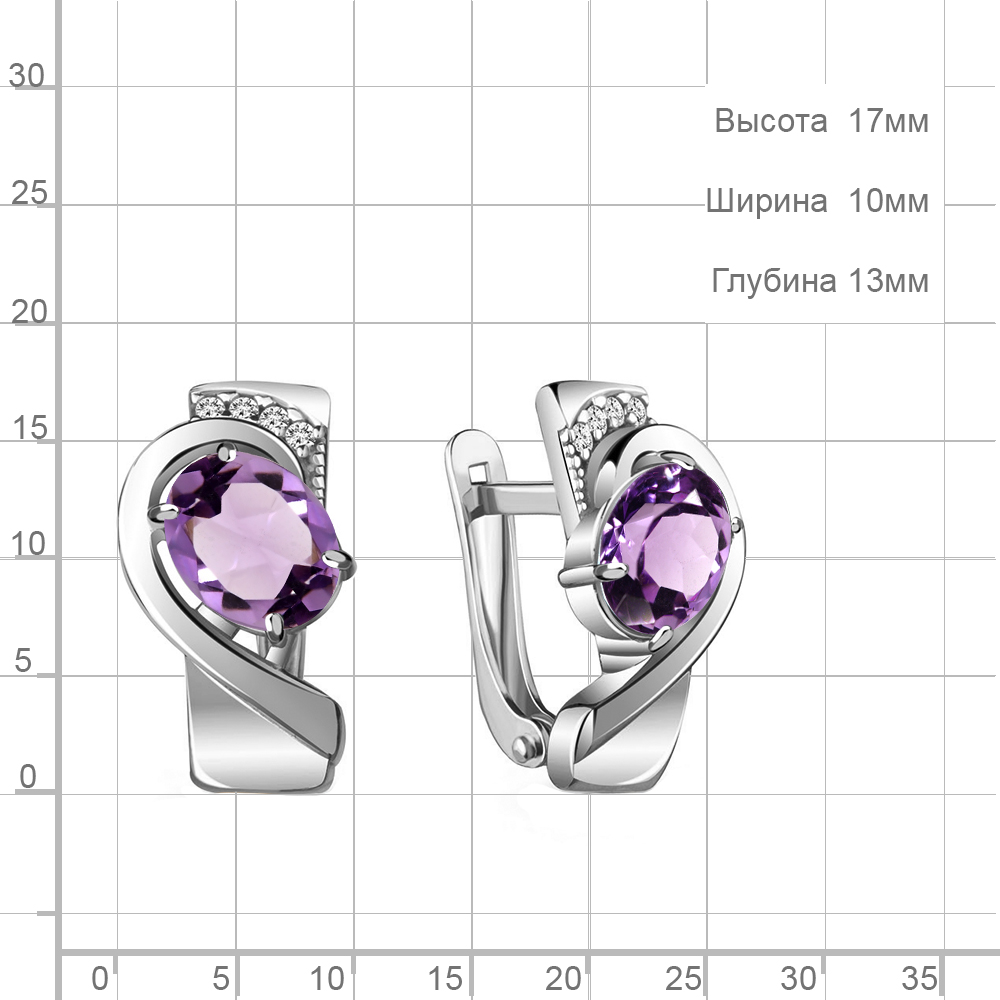 4741404А Серьги из Серебра с аметистами, фианитами
